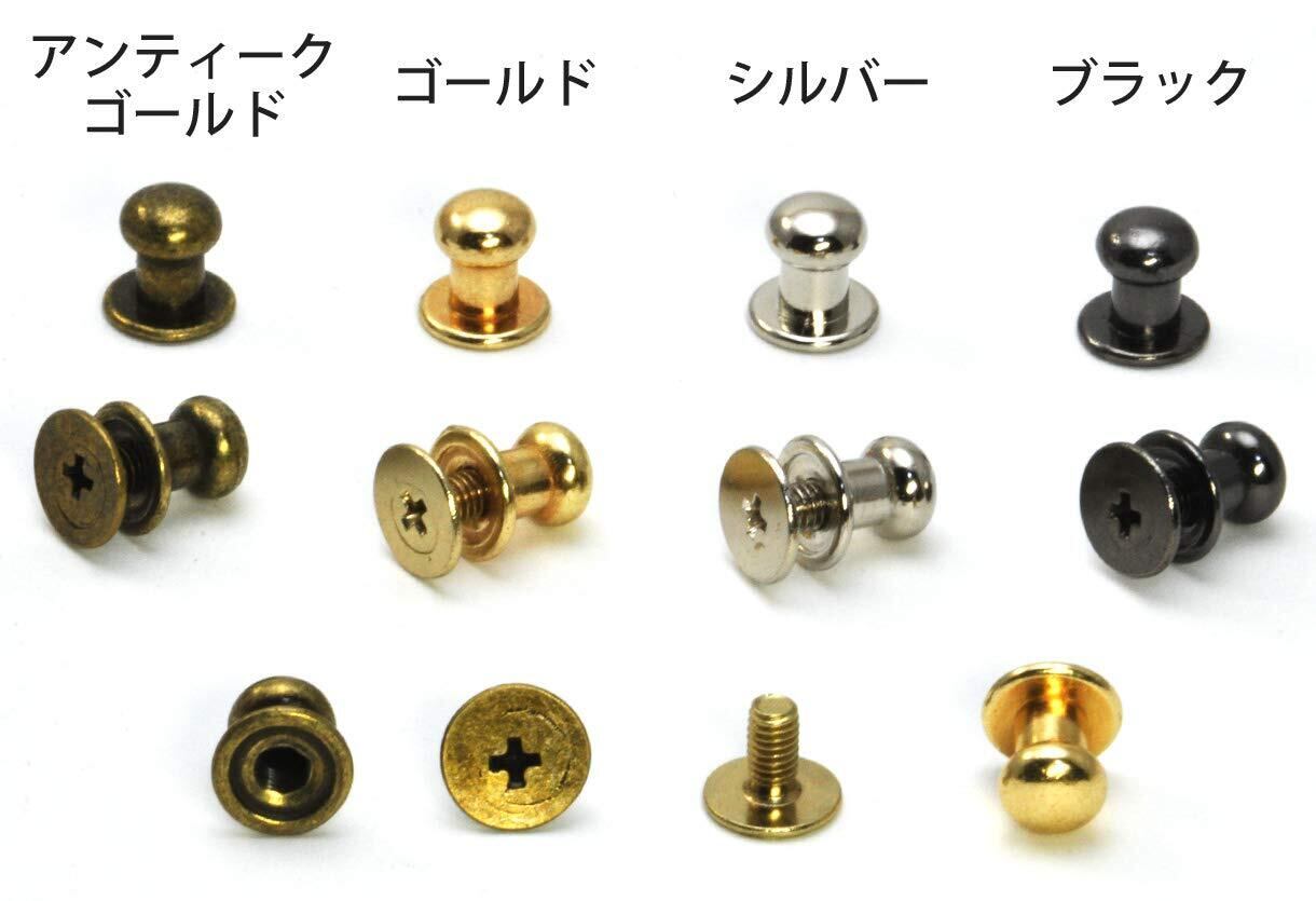 頭部の直径が6mmのネジ式ギボシ80個セットです。カラーはアンティークゴールド、ゴールド、シルバー、ブラックの4色で、ミックスも選べます。