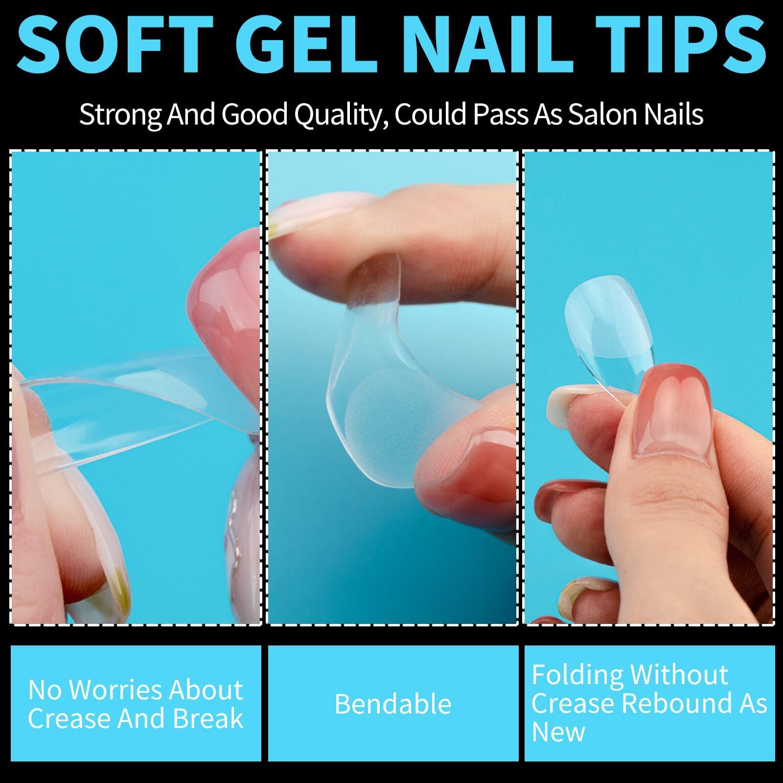 【高品質素材】: 当社のソフトジェルフルカバーネイルチップは、最新のソークオフ樹脂素材で作られており、昔ながらの安価な人工ネイルチップと比較して、より薄く、より耐久性があり、可鍛性があり、より自然です。