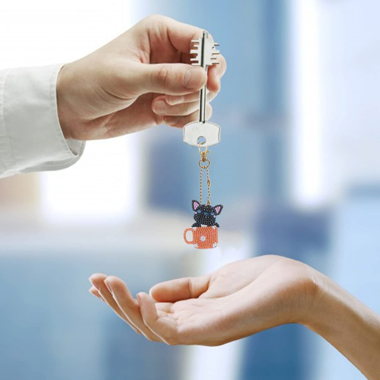【新春セール】Amyaker ダイヤモンドアート キット DIY キーホルダー 5Dダイヤモンド塗装キット ダイアモンドビーズ キーホルダー 両面全貼り付け DIY手作り キーホルダー 財布 キーペンダント バッグ 装飾用 コップ犬 5個入