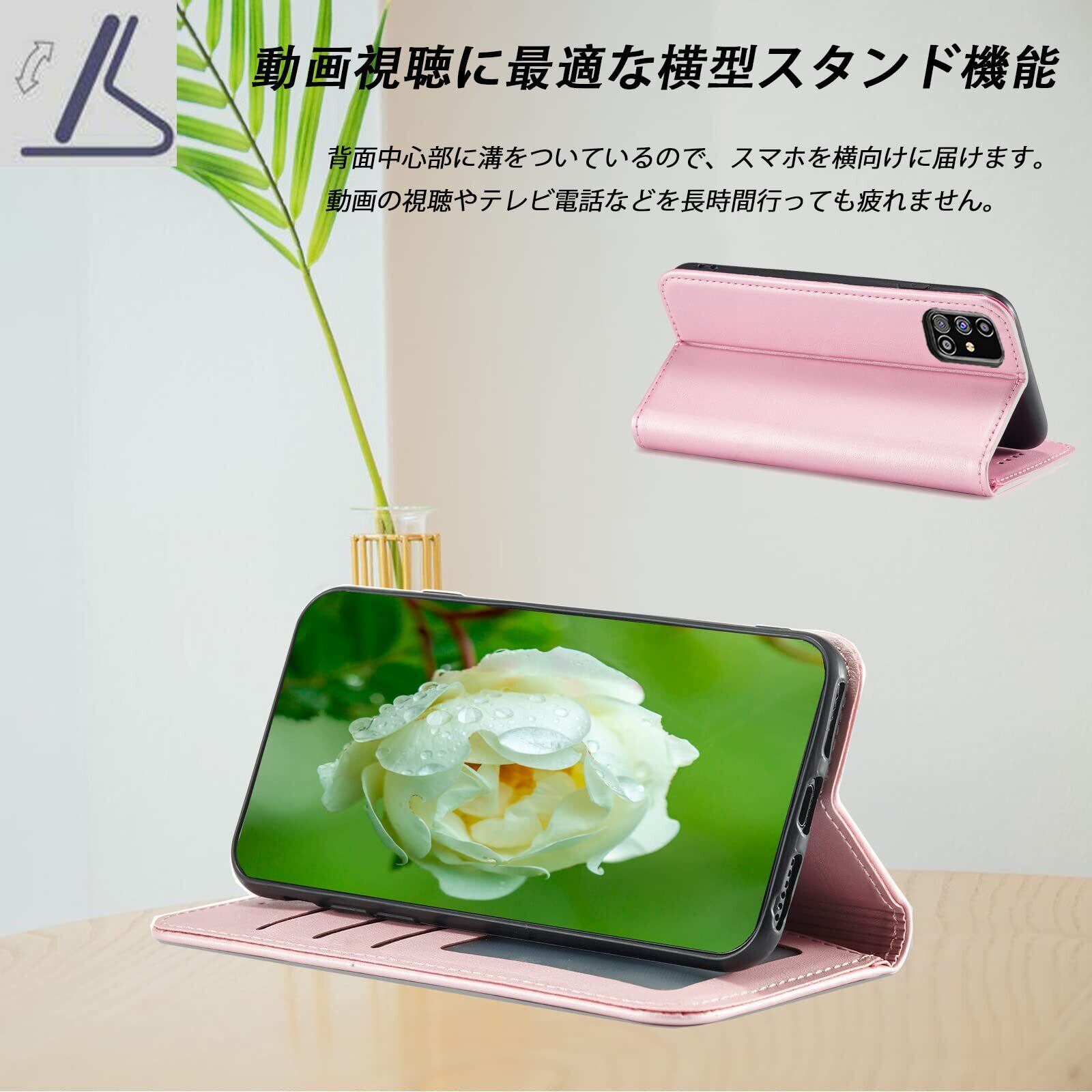SUMSUNG Galaxy A52 5G ケース手帳型 SC-53B ケース docomo 対応 サムスン ギャラクシー A52 5G カバー A52 ケース galaxy SC53B ケース A525G スマホケース A52ケース 手帳型 携帯ケース スマホケース携帯カバー肌触り良い PUレザー ストラップホール付き カード収納 財布型 galaxy a52 case マグネット内蔵 スタンド機能 耐衝撃 全面保護 薄型 軽量 防水 耐摩擦 シンプル ビジネス風 大人可愛い 男女兼用 (Samsung Galaxy A52 5G SC-53B 対応) ゴールドピンク