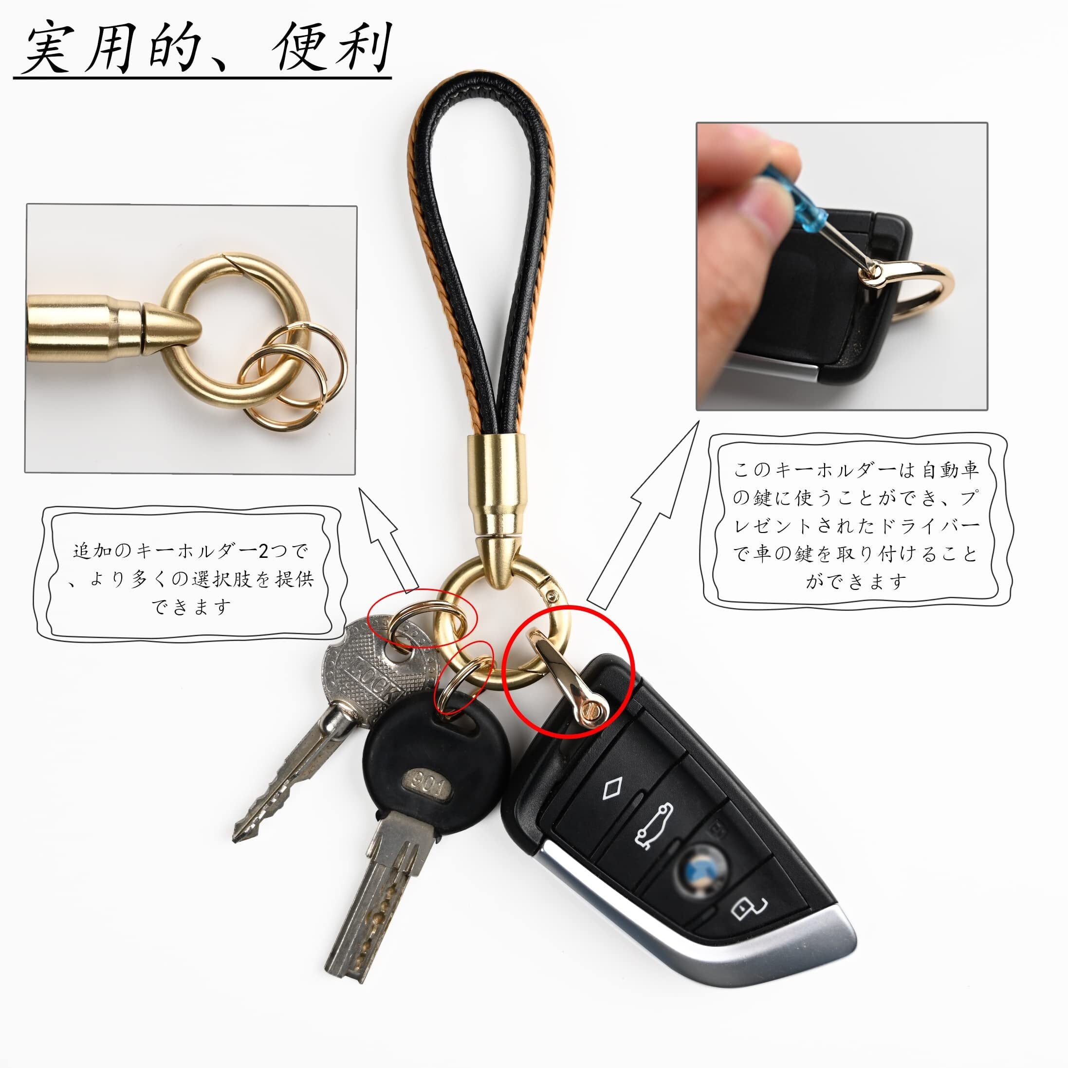 La Konラコン カラビナキーホルダー 手編み革キーチェーン 贈り物キーリング 記念品 3個キーリング添付 取り付け安いリング