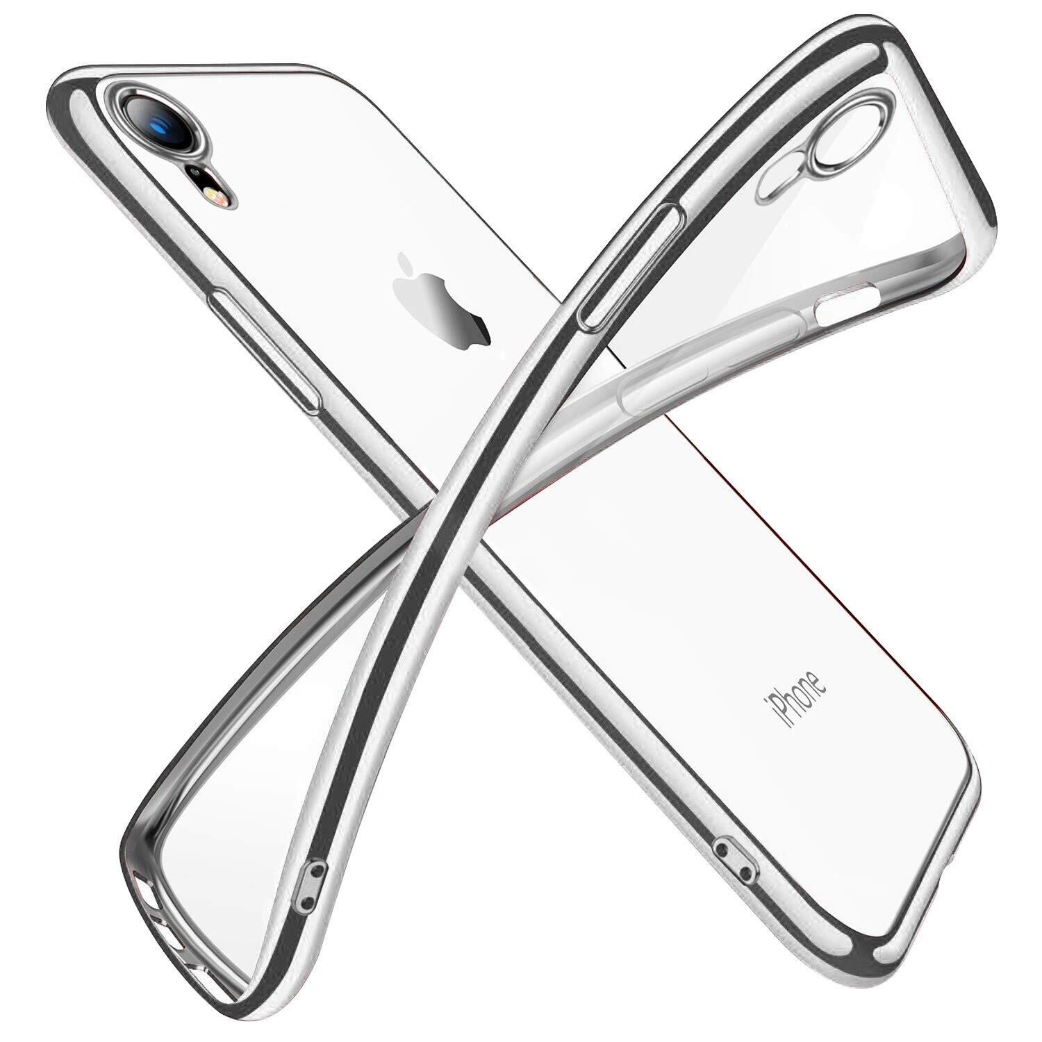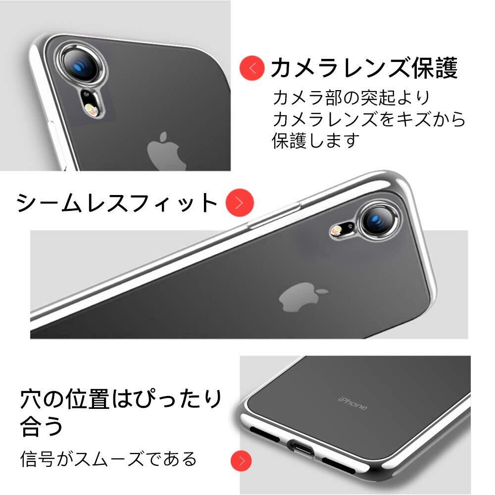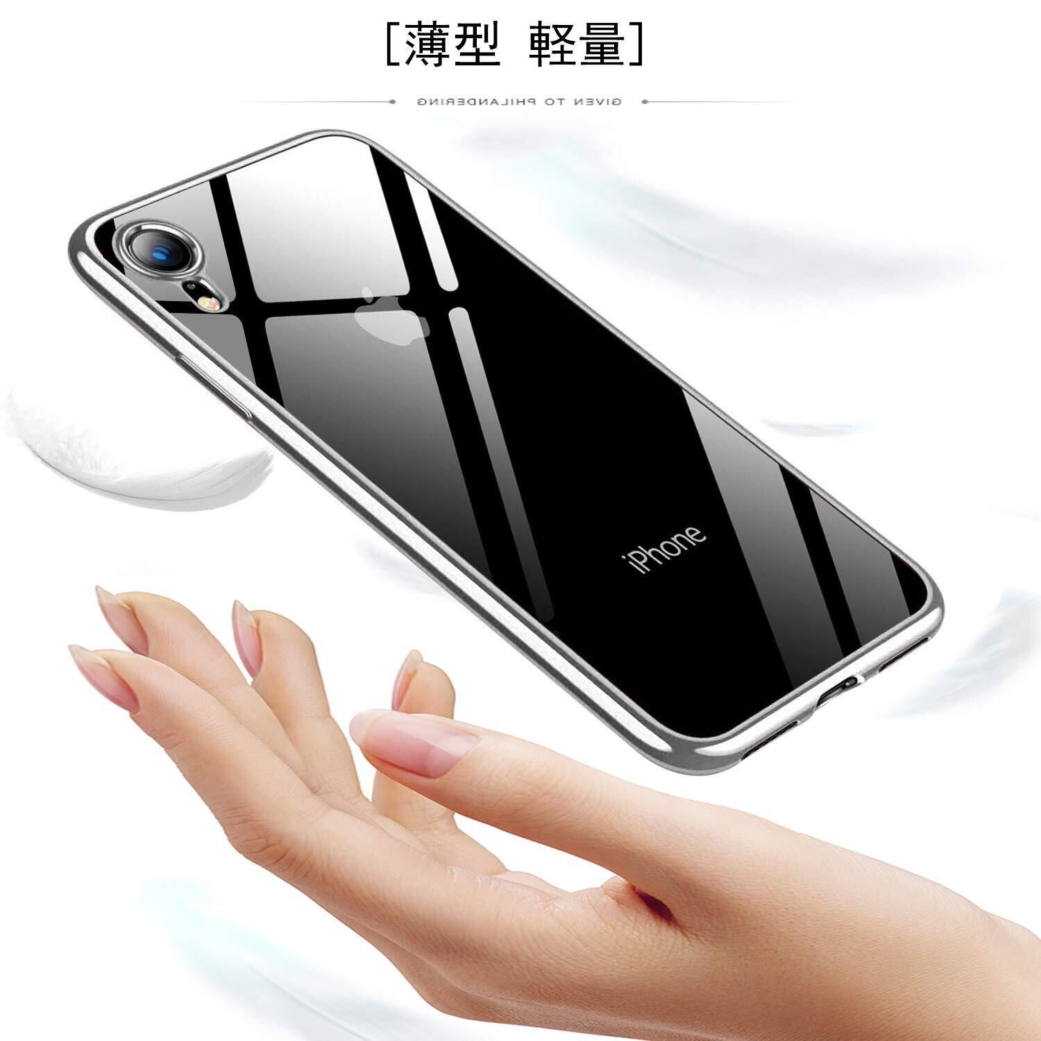 iPhone XR ケース クリア 透明 tpu シリコン メッキ加工 スリム 薄型 6.1インチ スマホケース 耐衝撃 黄変防止 一体型 人気 携帯カバー シルバー