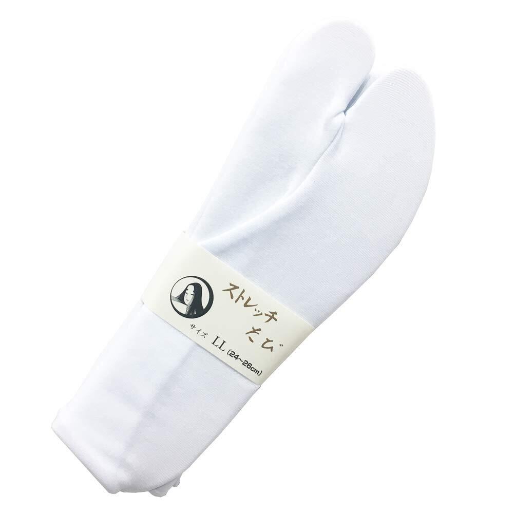 足袋 ガクヤ ストレッチ足袋 ストレッチ たび 日本製 [M寸 LL寸] 足袋カバー 楽屋 こはぜなし 口ゴム ソックス のびる 白 (LL寸 24~26cm)