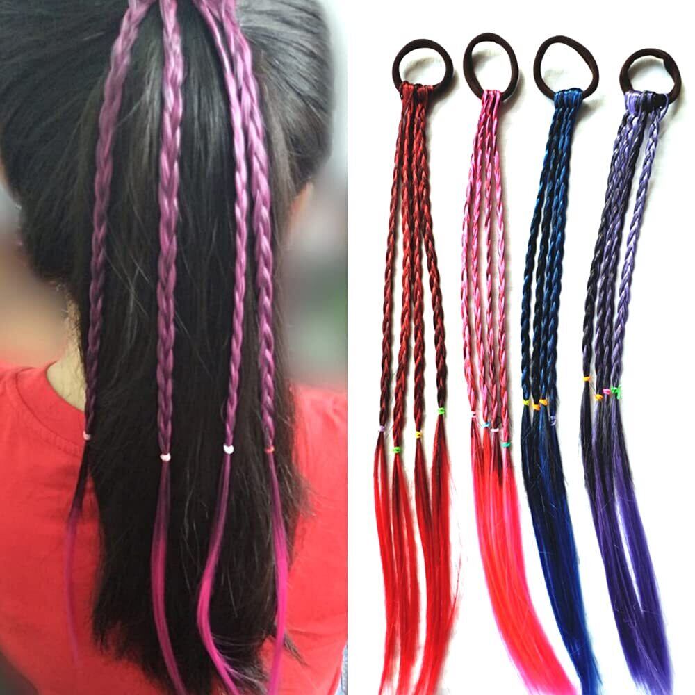 YFFSFDC ヘアエクステ 三つ編み 編み込み ハロウィン コスチューム キッズ ダンス イベント グラデーションカラーエクステ キッ エクステンション ヘアエクステ 髪の毛 付け髪 ワンタッチ キッズ ダンス発表会 フェス ピンク/赤/青/紫 4色セット