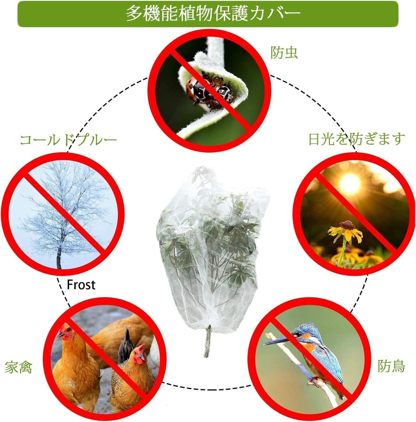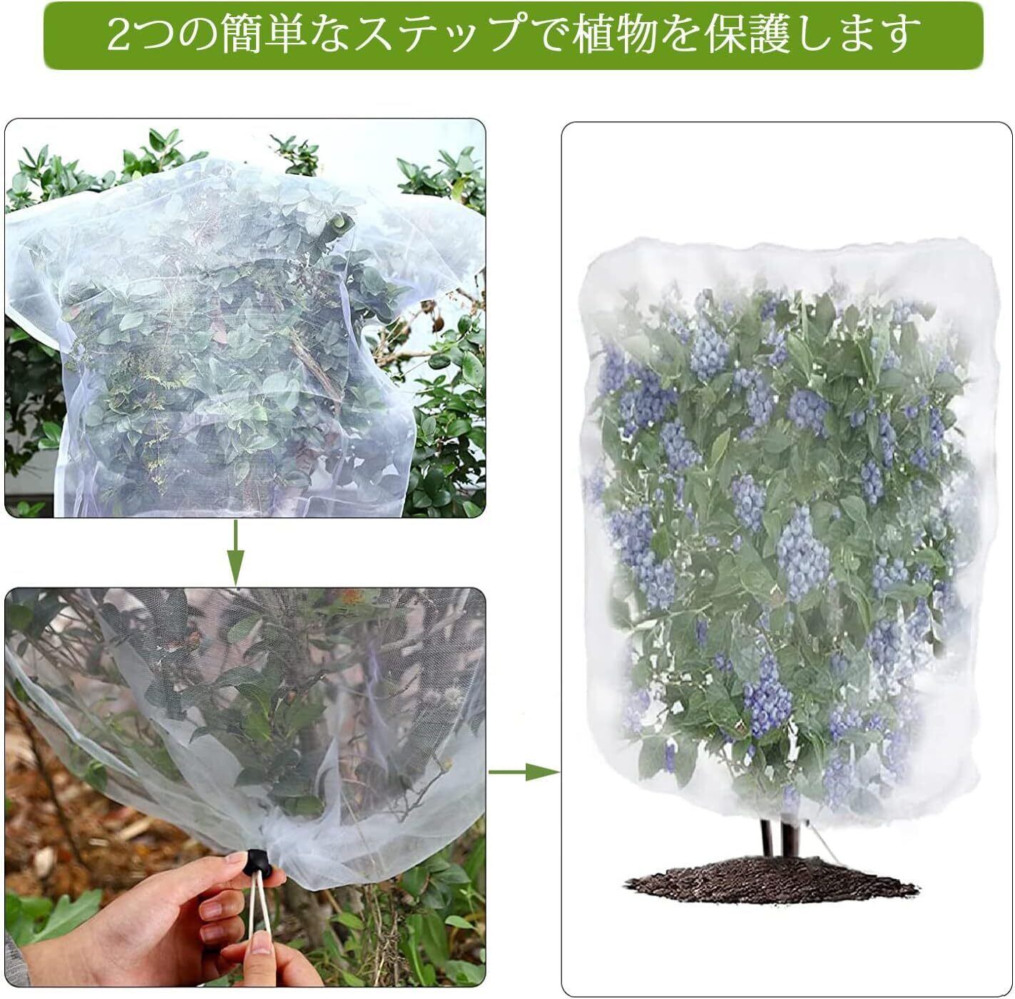 使用簡単:開けて、植物に覆う或いは植物を囲むだけでしっかりと保護できます。野菜、果樹などの植物を保護すると同時に、鳥、しかなどの動物に傷つけにくい優しい園芸用ネットです。