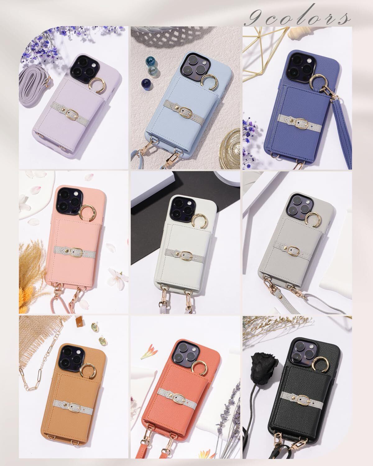 【RISUKAI】Apple MFi認証済み スマホショルダー ストラップ スマホケース iPhone14 ケース カード収納 肩掛け ミラー付 背面手帳型 iPhone14 韓国 デザイン iPhone (iPhone6/7/8/se2/se3, エトープ)