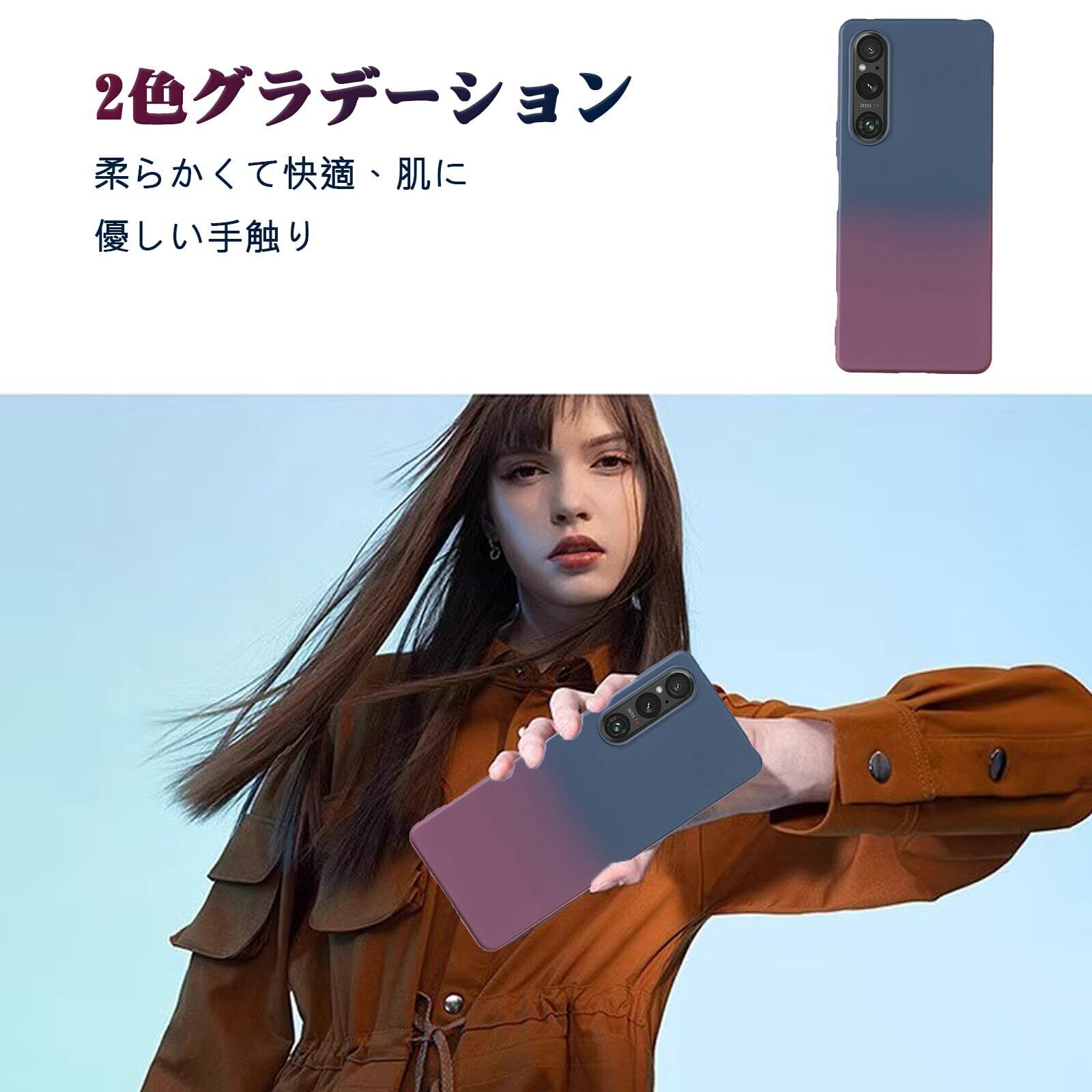 【 Agaiy 】SONY Xperia 1 V/SO-51D / SOG10 対応 ケース グラデーションカバー 薄型 柔軟 軽量 ソニー エクスペリア1v2023 スマホ保護カバー マット質感 全面保護 耐衝撃 TPU ケース 滑り止め 落下防止 xperia 1v カバー (ブルーベリー/チェリー)