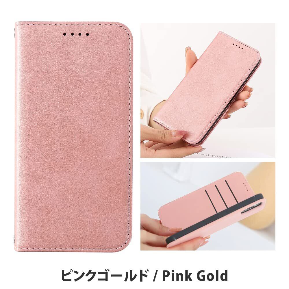 HanaRo iPhone15Pro ピンクゴールド iPhone15Proケース PUレザー 手帳型ケース ベルトなし マグネット アイフォン ケース カバー カード収納