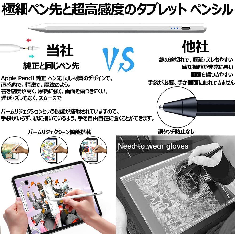 【新着商品】【iPad ペンシル バッテリー残量表示】A-pple ペンシル アップルペンシル 第2世代 互換 ipad pencil パームリジェクション/マグネット吸着/傾き検知機能付き USB-C充電式 ホワイト 2018年以降iPad/iPad Pro/iPad air/iPad mini対応
