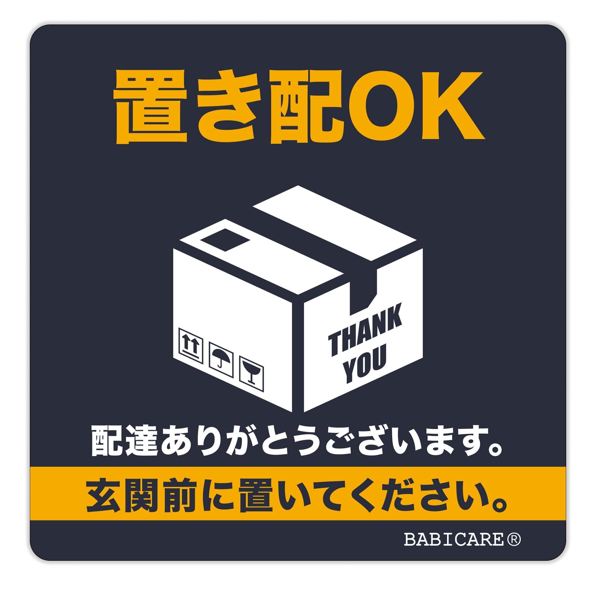 【BABICARE】日本製 置き配OK 玄関前に置いて ステッカー シール プラスチック製 高耐候/防水/耐光/UVカット/ 80X80mm 賃貸住宅 賃貸マンション・アパート (紺)