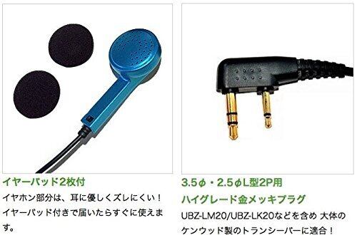 ケンウッド対応 インカム イヤホンマイク デミトス用 2ピン UBZ-LS20 UBZ-LP20 UBZ-LM20 UBZ-LK20 UBZ-EA20R UBZ-LP27 UTB-10 用 トランシーバー 用 EMC-3 EMC-3A EMC-11 EMC-12 EMC-5F 互換品 VOX対応 (メタリックブルー) FIELD GEAR FGBL