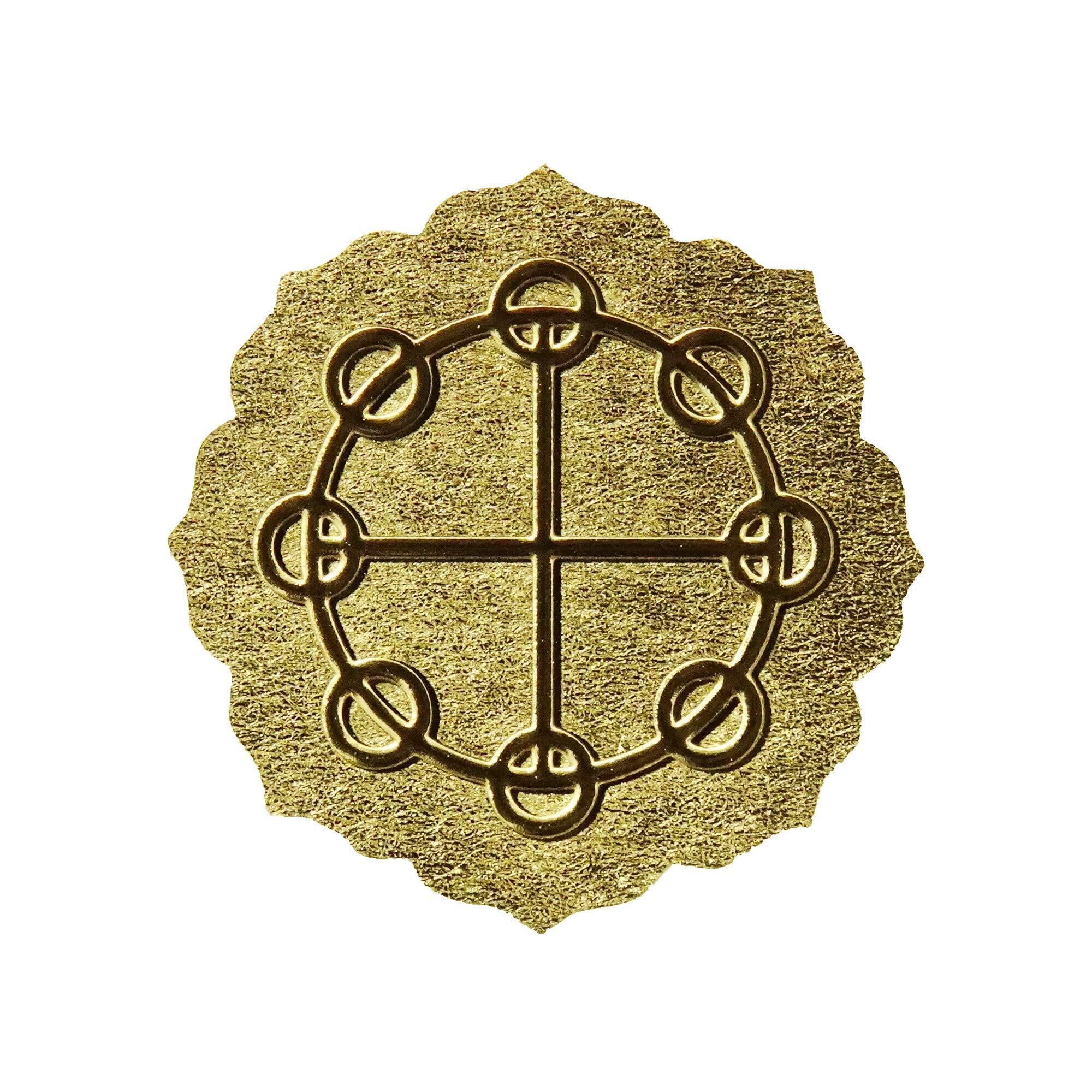 シールの直径は、約20mm。15枚入りです。縁取りは、やたのかがみをモチーフにしています。