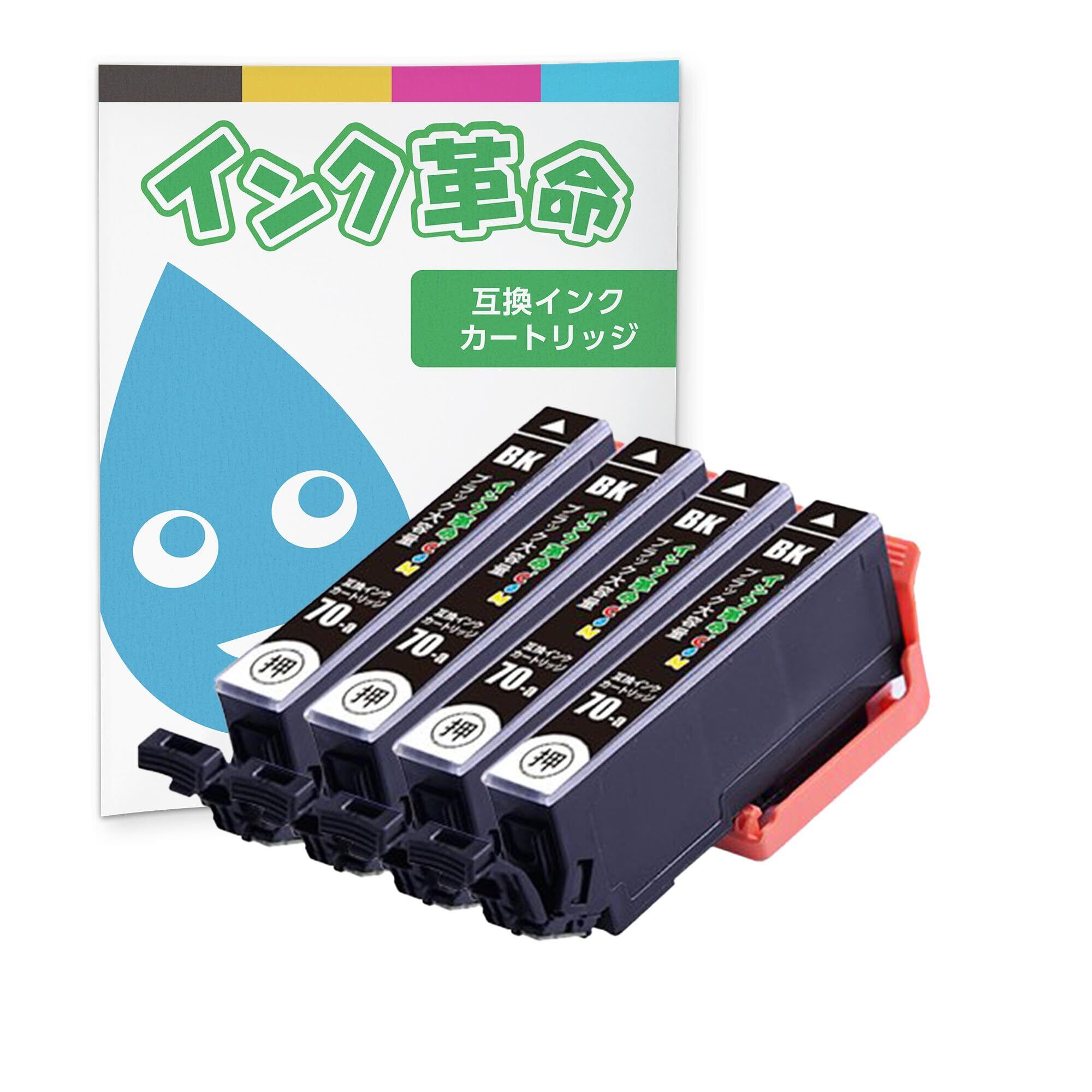 【インク革命】 EPSON用 ICBK70L 互換インク ブラック ×4本 大容量 エプソン用 インク IC70 シリーズ (さくらんぼ) 純正インクと併用可 ICチップ付き 残量検知対応 【日本企業】 対応機種:EP-306 / 706A / 775A 776A / 805A / 806A / 905A / 906F