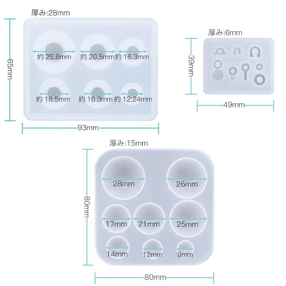 サムコス 3個セット シリコンモールド 球体 半球 ジュエルモールドパーツ 多サイズ レジン型 ソフトモールド ハンドメイド DIY 手芸 レジンアクセサリー 作成 抜き型