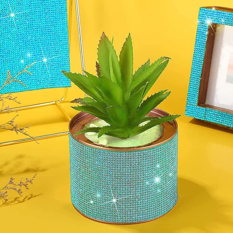 ORBIDO ラインストーン シール [12×20㎝]2枚入り デコシール 自己粘着ラインストーンシール 修正工芸品 電話 衣類 車 スマホ DIY スワロフスキー シール クリスタル キラキラシール 熱接着タイプ レイクブルー