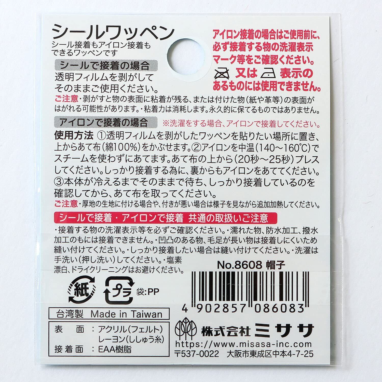材質:アクリル(ベース生地)・レーヨン(ししゅう糸)・EAA樹脂(接着)