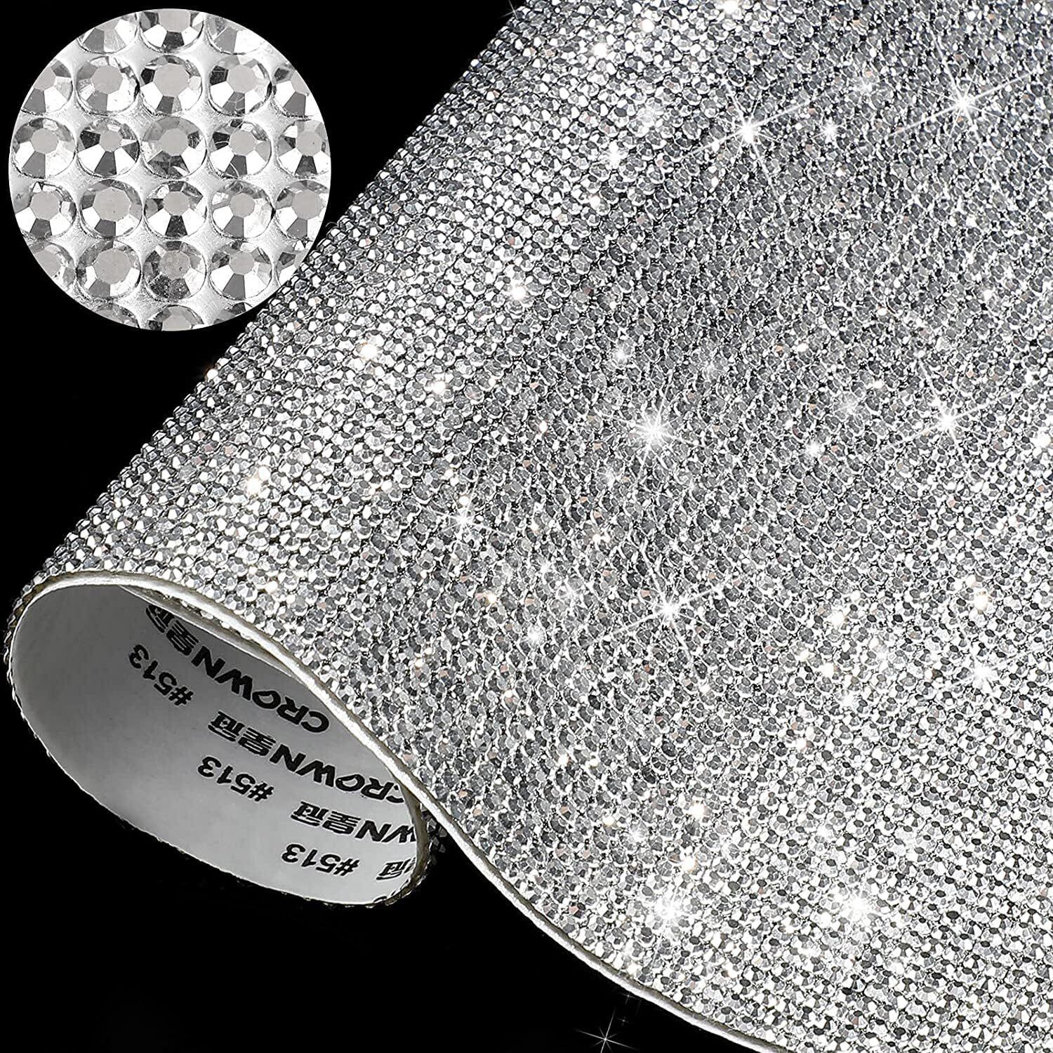 ORBIDO ラインストーン シール [12×20㎝]2枚入り デコシール 自己粘着ラインストーンシール 修正工芸品 電話 衣類 車 スマホ DIY スワロフスキー シール クリスタル キラキラシール 熱接着タイプ 銀色