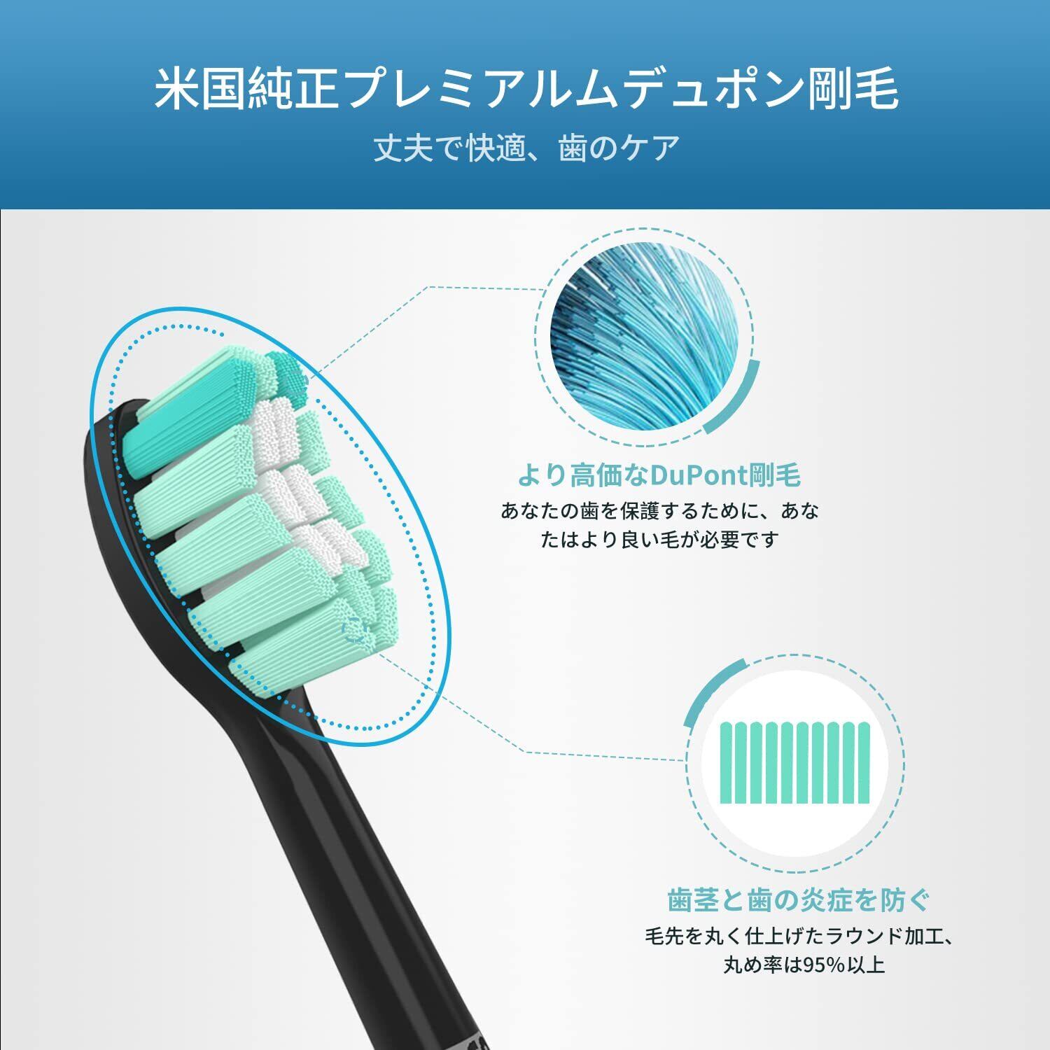 Senyum 電動歯ブラシ 替えブラシ 対応 フィリップス ソニッケアー 替えブラシ, 互換ソニックケアー 替ブラシ(黒8本)