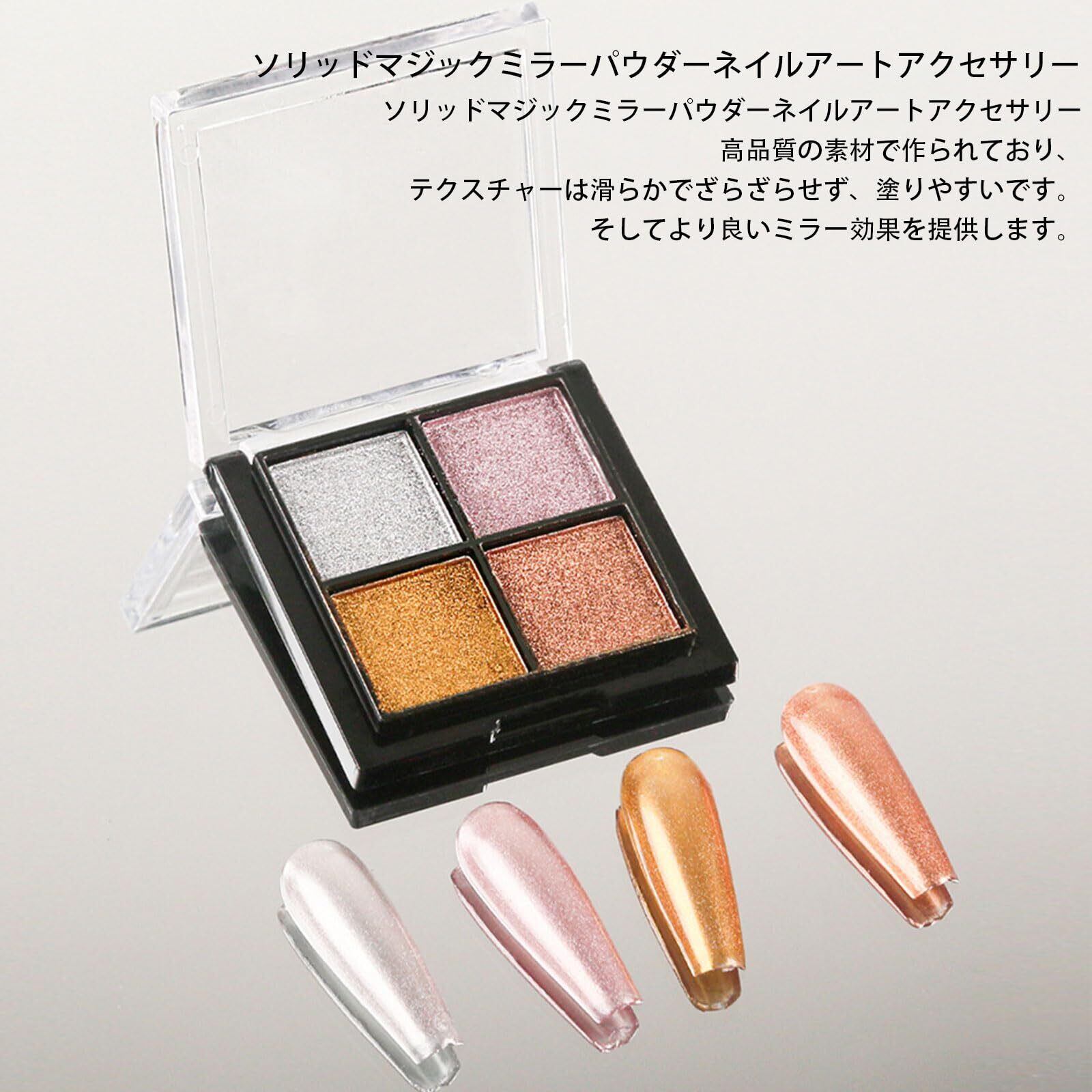 ミラーパウダー 4色パレット ネイルパウダー 固形 ミラーネイル パウダー ゴールド シルバー オーロラパウダー ジェルネイル パウダー レジン ネイル工房 ネイルパーツ スポンジチップ付き (F)