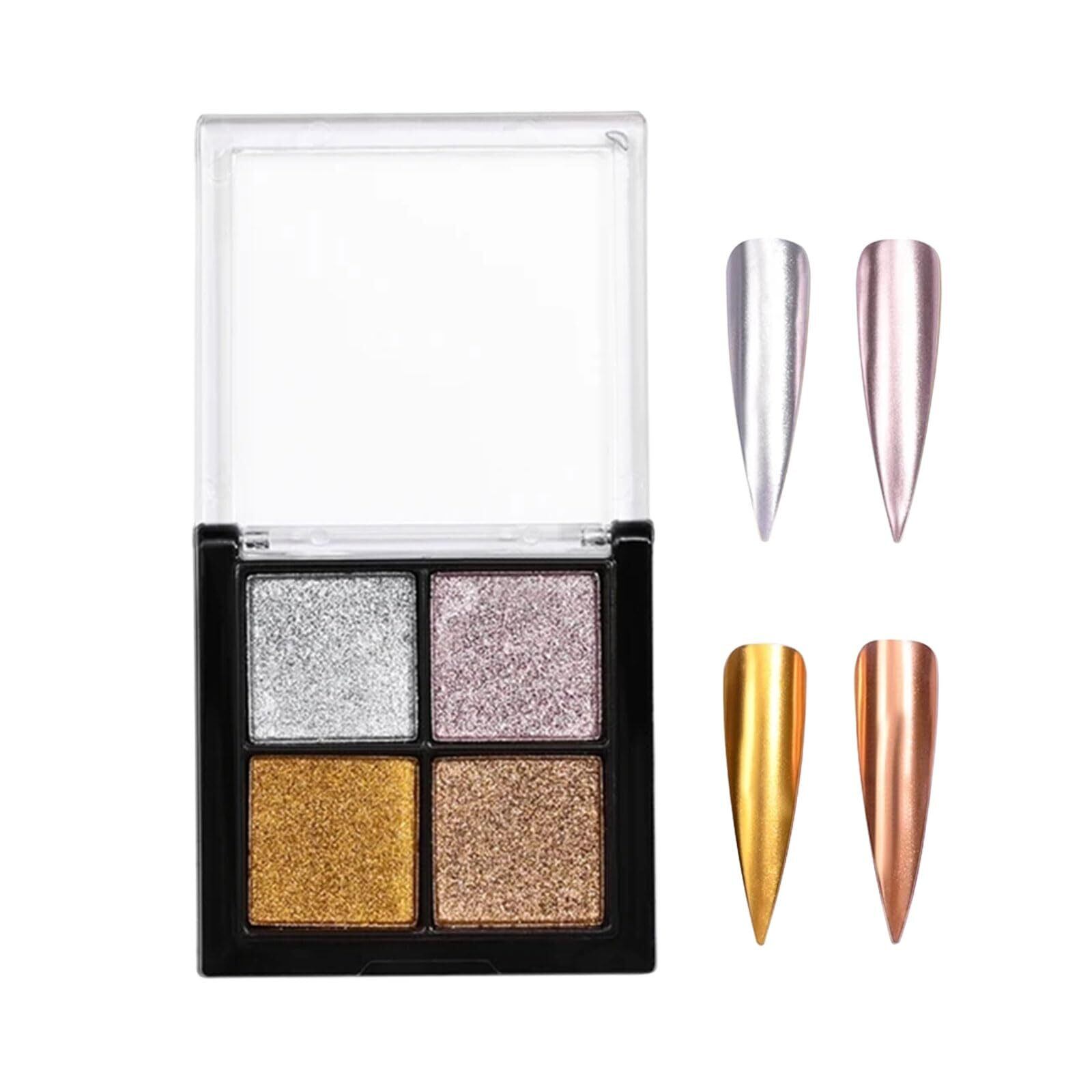 【新着商品】ミラーパウダー 4色パレット ネイルパウダー 固形 ミラーネイル パウダー ゴールド シルバー オーロラパウダー ジェルネイル パウダー レジン ネイル工房 ネイルパーツ スポンジチップ付き (F)