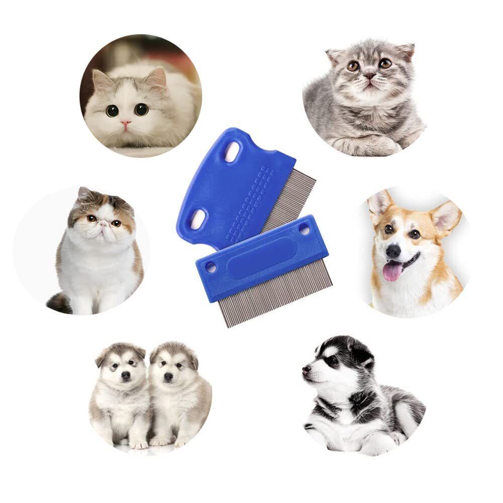 サムコス 犬 ブラシ 猫 ブラシ 4本セット ステンレス製 犬用涙やけ除去用くし 肌にやさしい 痒み止め お手入れ用品 猫トリミング 長毛短毛兼用 (ブルー 2本セット)