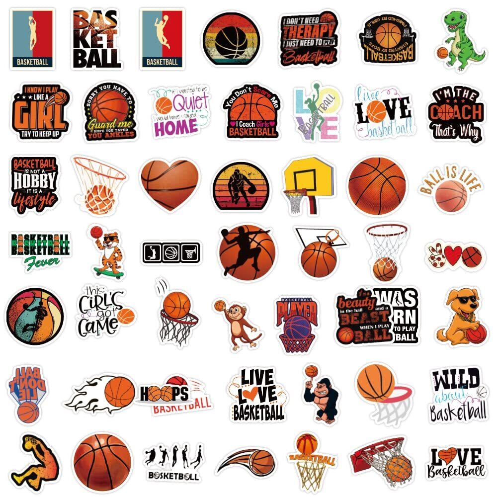 50枚 バスケットボールステッカーセット 防水シール ステッカーパック デカール スーツケース 車 自転車 バイク ヘルメット パソコン スノーボードに適用