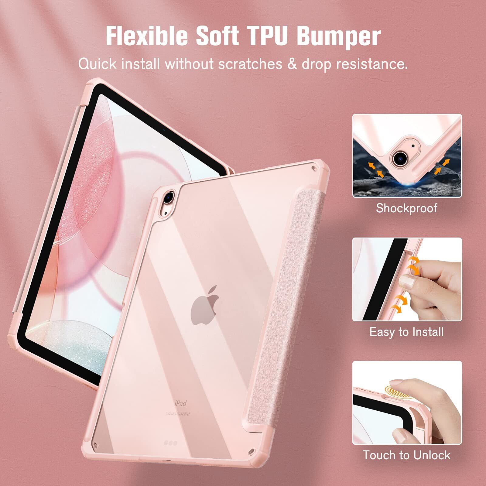 【在庫セール】Fintie iPad Air 11インチ ケース M3 (2025 第7世代) / M2 (2024 第6世代) / Air 5/4 ケース 2022/2020 10.9 インチ 透明バックカバー Apple Pencil 収納可能 ワイヤレス充電対応 三つ折スタンド スリープ機能 軽量 薄型 傷つけ防止 PU合成レザー TPU(ローズゴールド)