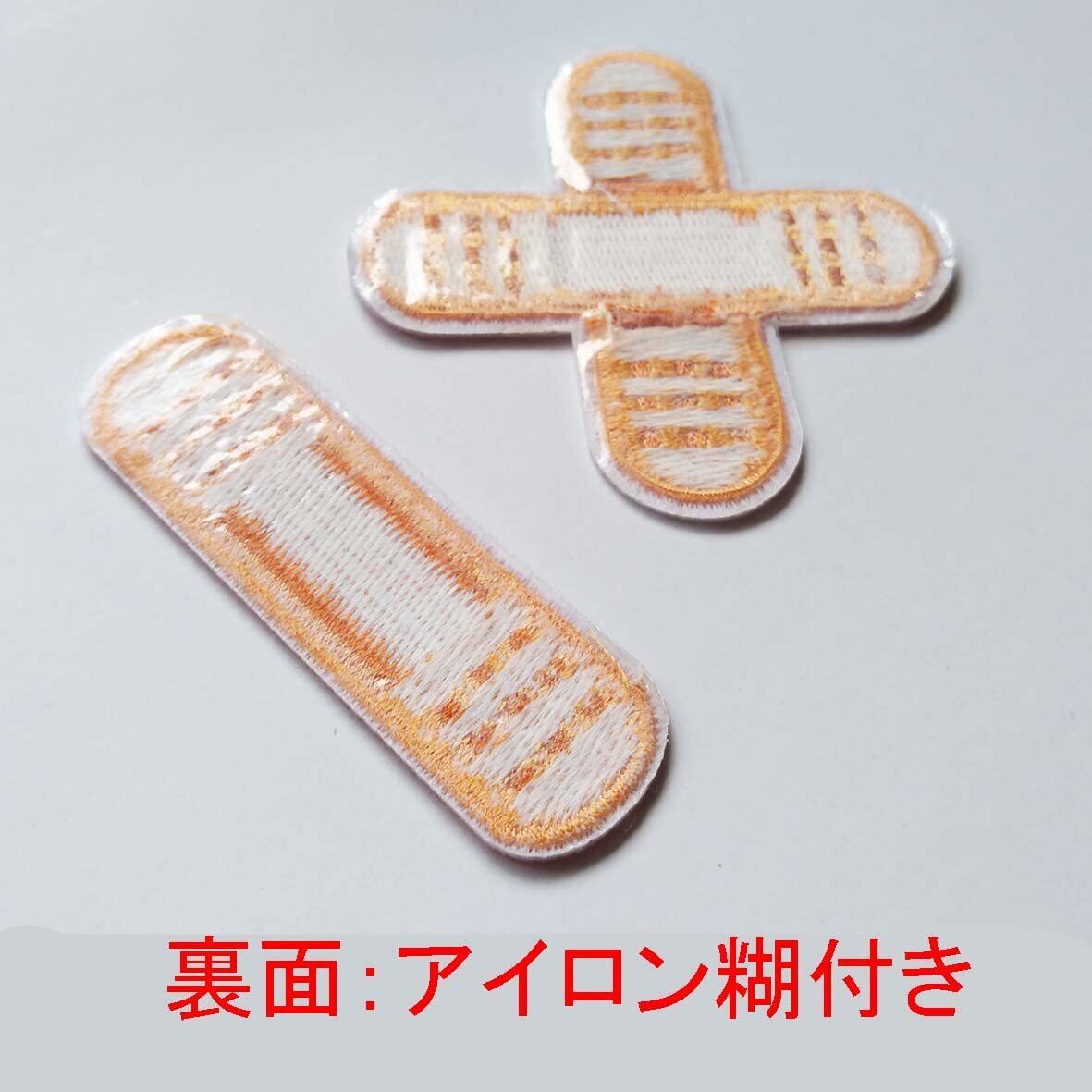 ワッペン バンドエイド 2枚セット 絆創膏 ばんそうこう 刺繍パッチ アイロン接着 (+ー)