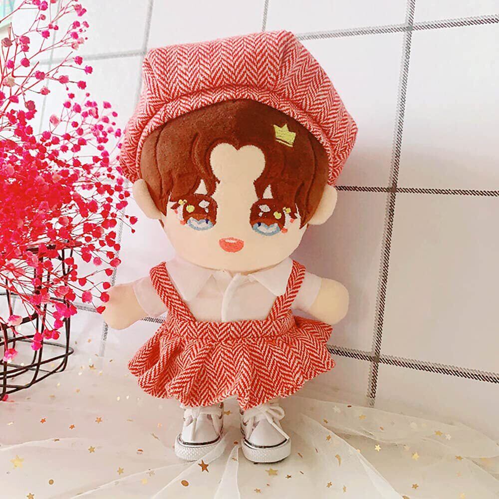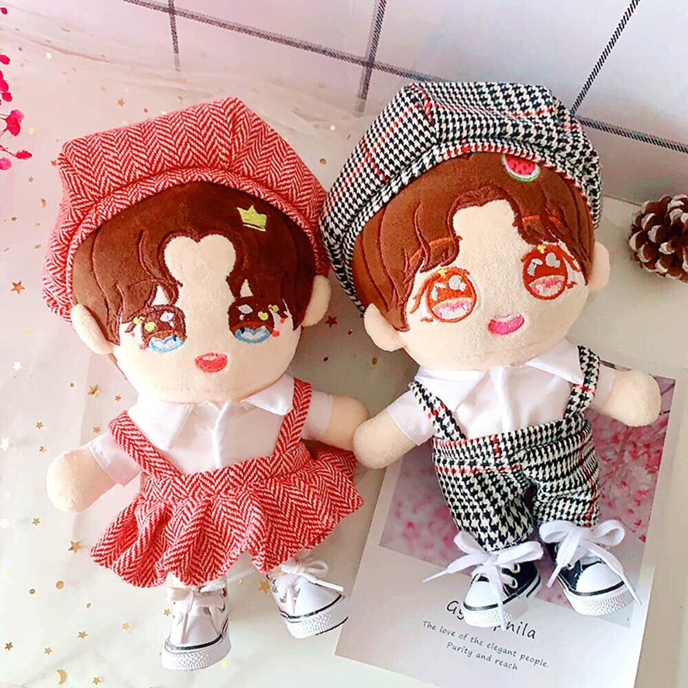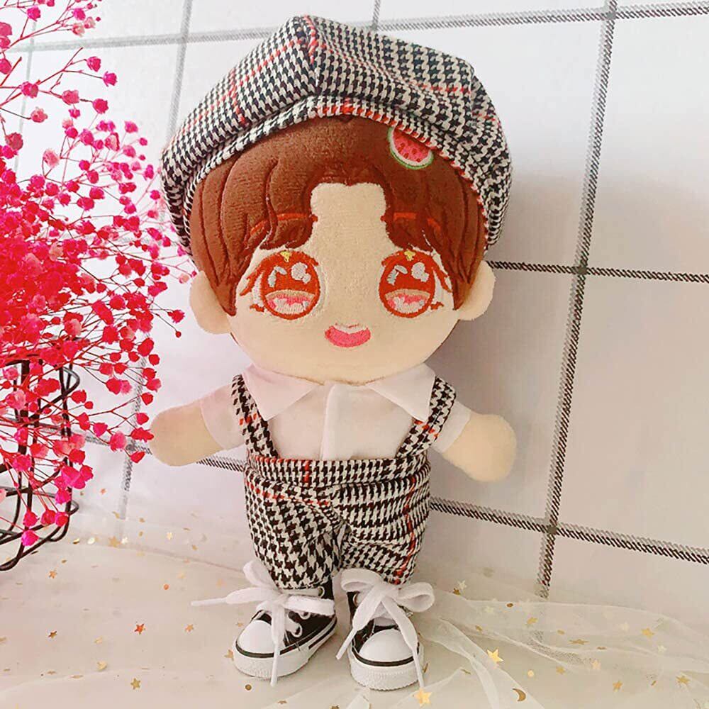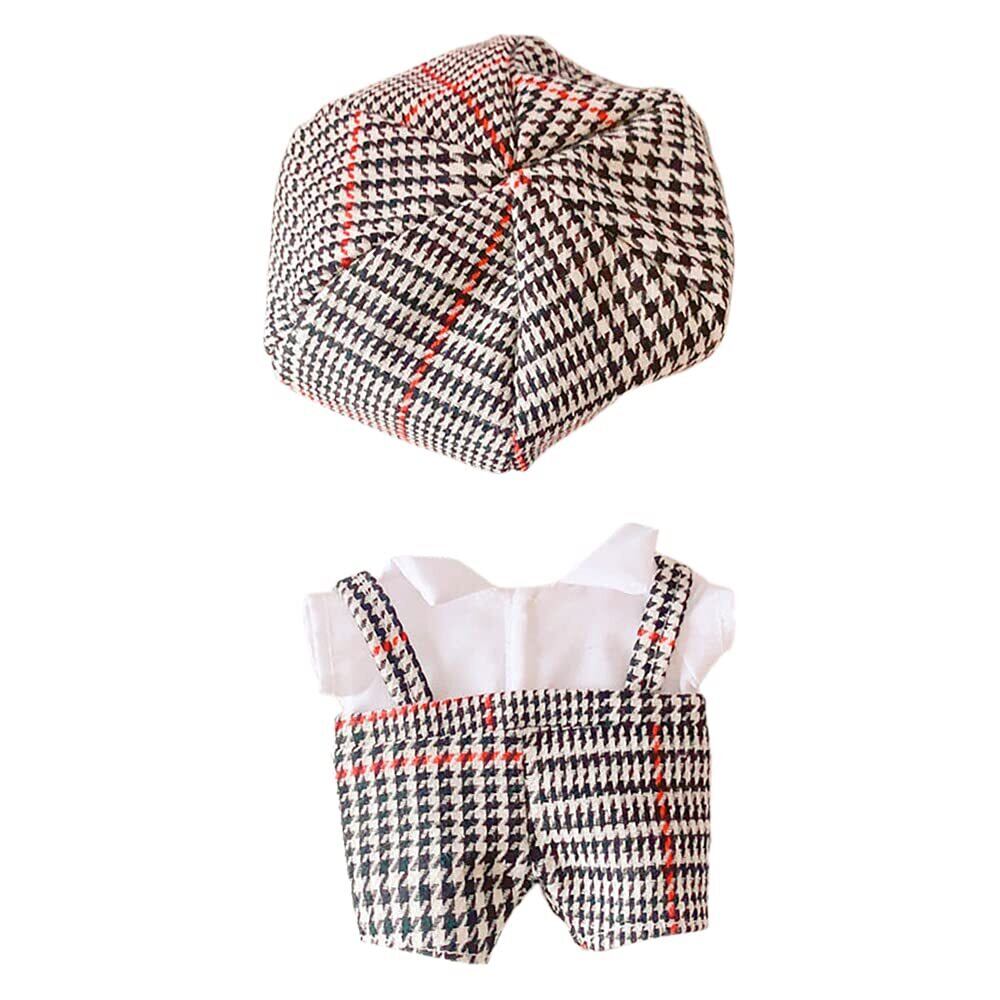 niannyyhouse 人形の服 20cm 綿人形の服 帽子+ボディスーツ 2点セット カレッジスタイル ぬいぐるみ 用 人形ベビー服 千鳥格子 着せ替え (black)
