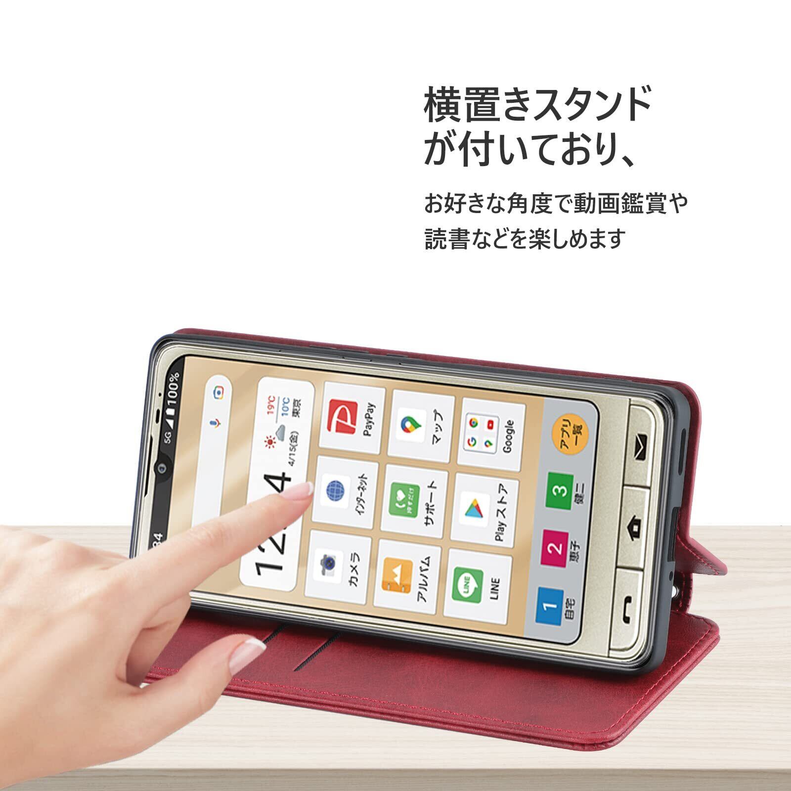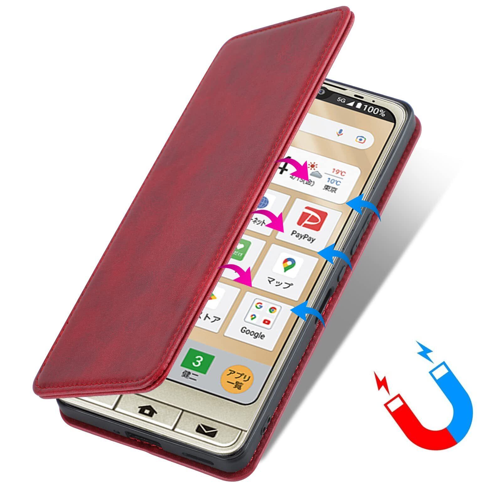 【新春セール】シンプルスマホ7 シンプルスマホ6 BASIO Active Active2 ケース 手帳型 A201SH SHG09 SHG12 カバー 全面保護 衝撃吸収 カード収納 スタンド機能 内蔵マグネット式 レッド