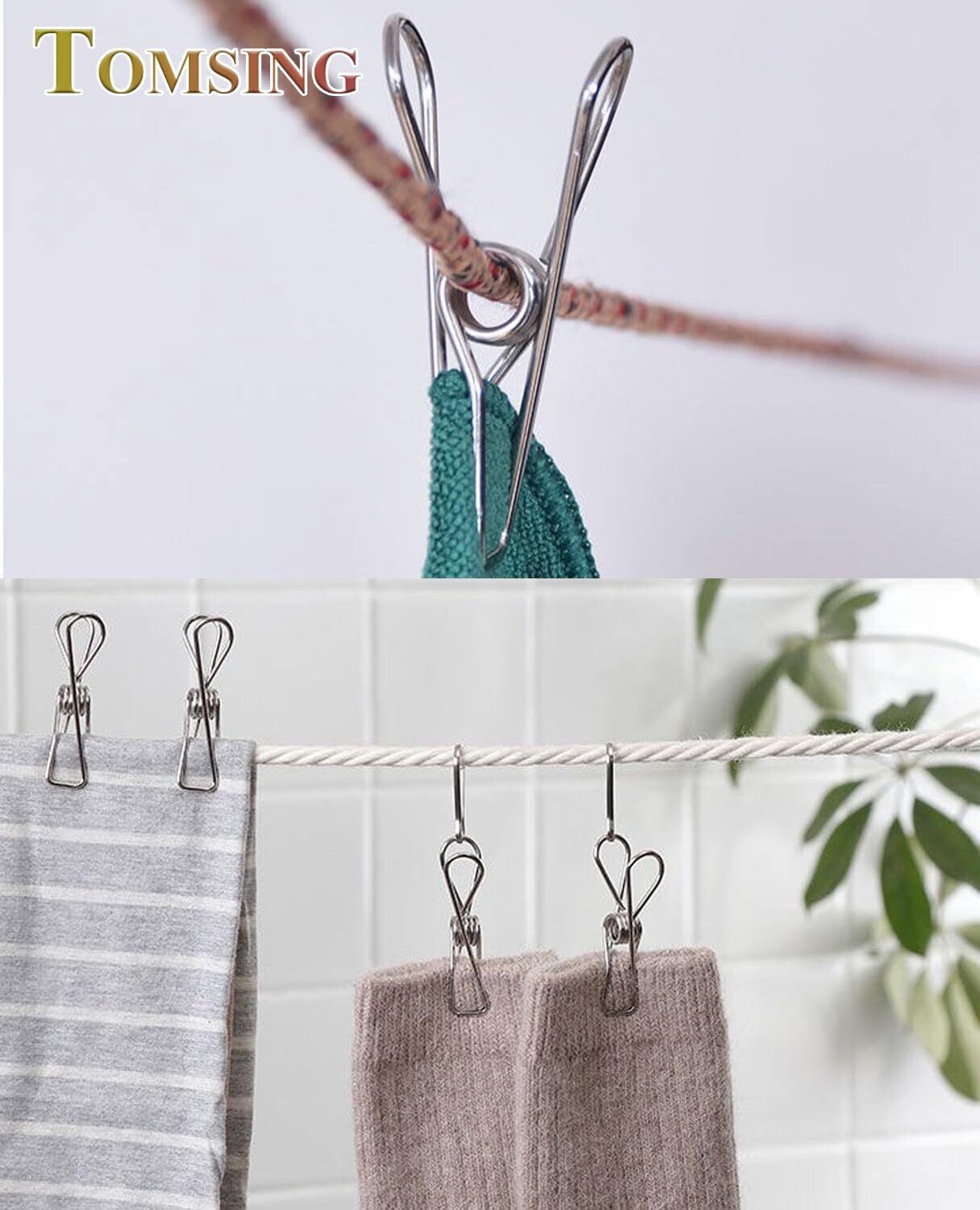 TOMSING 20個セット 洗濯ばさみ 洗濯バサミ ステンレス 強力 防風 竿ばさみ ピンチ 洗濯物干 ズボン ハンガー クリップ 錆に強い (シルバー·20pcs,5.2cm)
