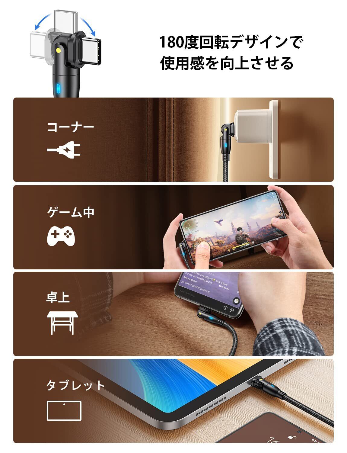 【L字型のデザイン & 180°回転可能】特別のL字型、「左右180°」のデザインを採用し、充電の角度を自由に調整できます。充電しながらゲームをしたり、動画を見たりする際、コネクタの接続部分が邪魔にならず、快適に楽しむことができます。不同長さの充電ケーブルは色々場所で利用ができます。