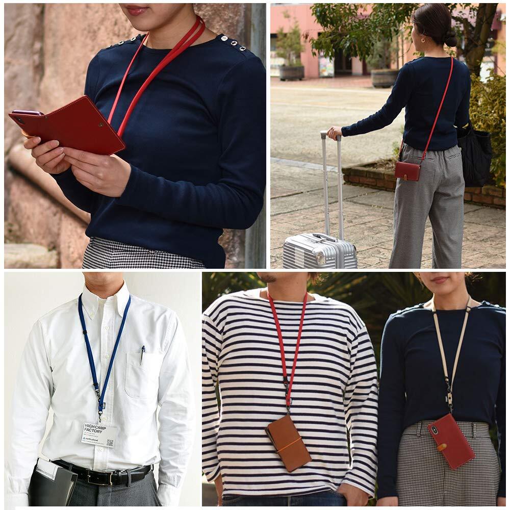 【2022最新】HIGHCAMP 2way ネック ストラップ 斜め掛け ロング ショルダーストラップ 約90cm~約155cm 長さ調節可能 スマホ 携帯 落下防止 ネックストラップ 日本製 【カラー ネイビー】