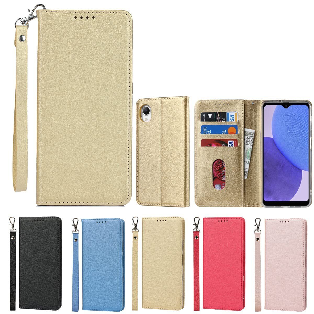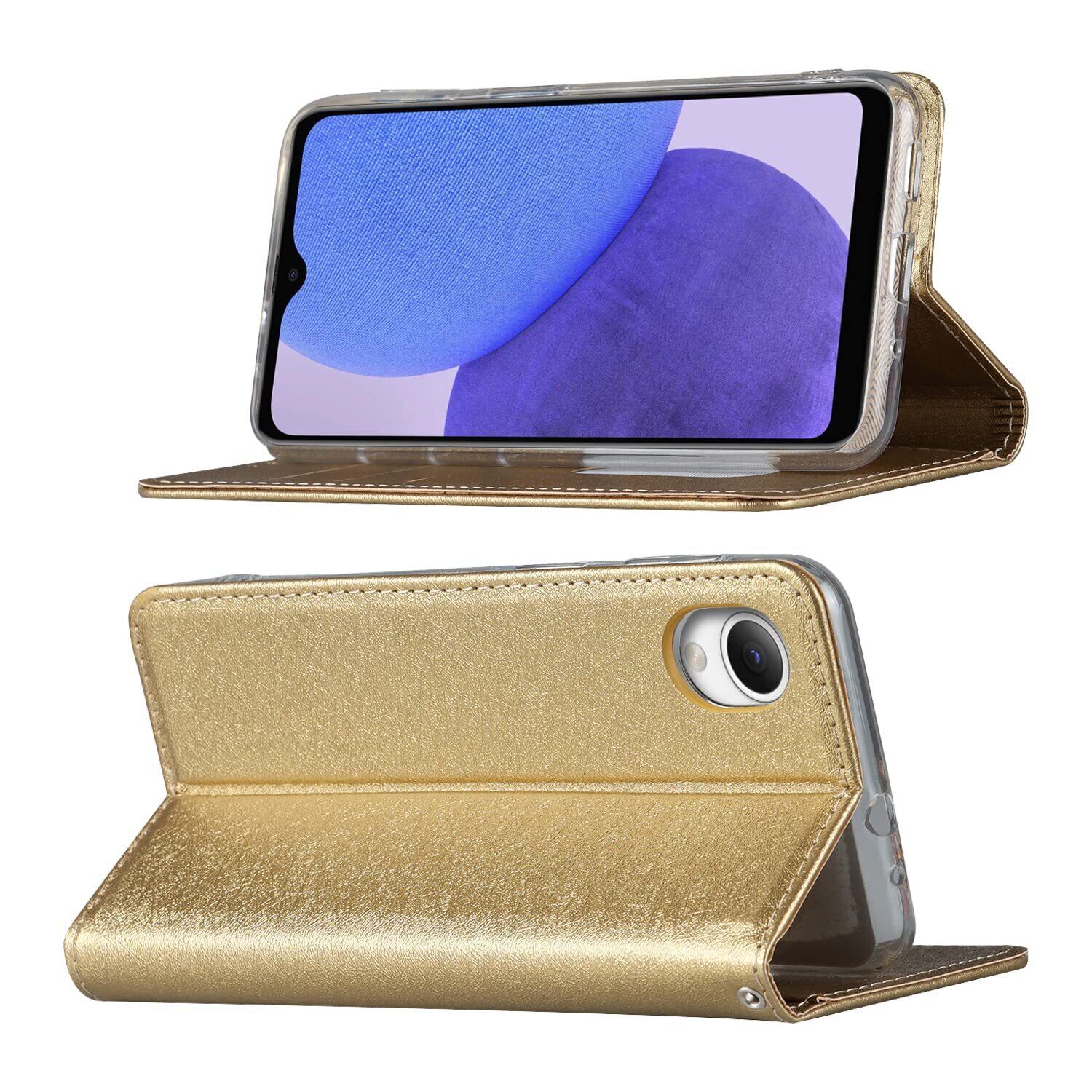 for Galaxy A23 5G A23E ケース ギャラクシー for Galaxy A23 5G A23E 日本語版 ケース for Samsung A23E A23 5G 手帳型 caseストラップ付き PU皮革 明るい色 内蔵マグネット 携帯カバー カードポケット スタンド機能 便利 ゴールド