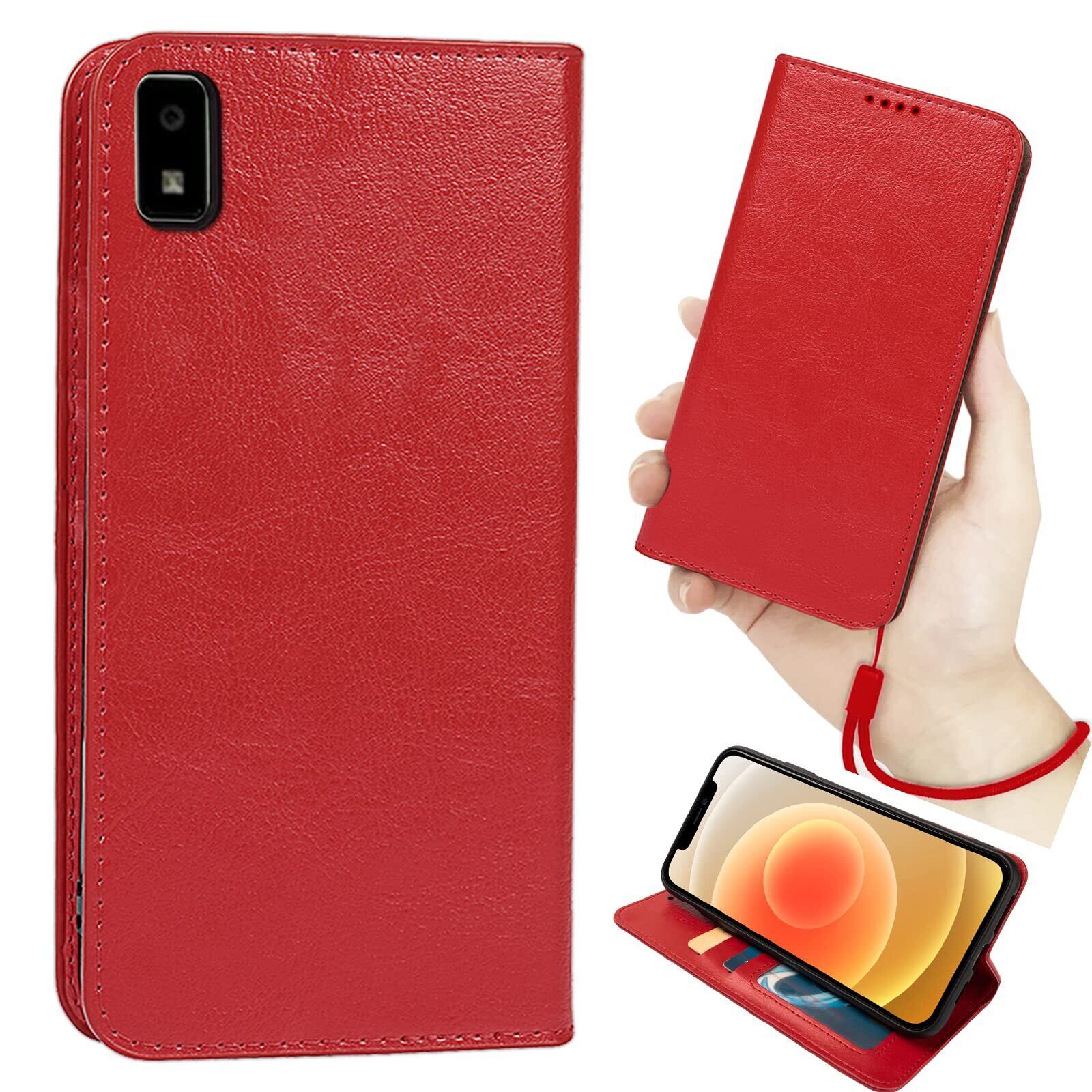 AQUOS wish wish2 ケース 手帳型 【ハンドストラップ付】 適用 AQUOSwish SHG06 SHG08 A103SH A104SH SH-M20 AQUOSwish2 SH-51C A204SH 対応 ケース アクオス ウィッシュ ウィッシュ2 スマホケース case 【AIPITORR】 レザー スタンド ストラップ カード入れ 内蔵マグネット 弱磁 落ち着いた レッド