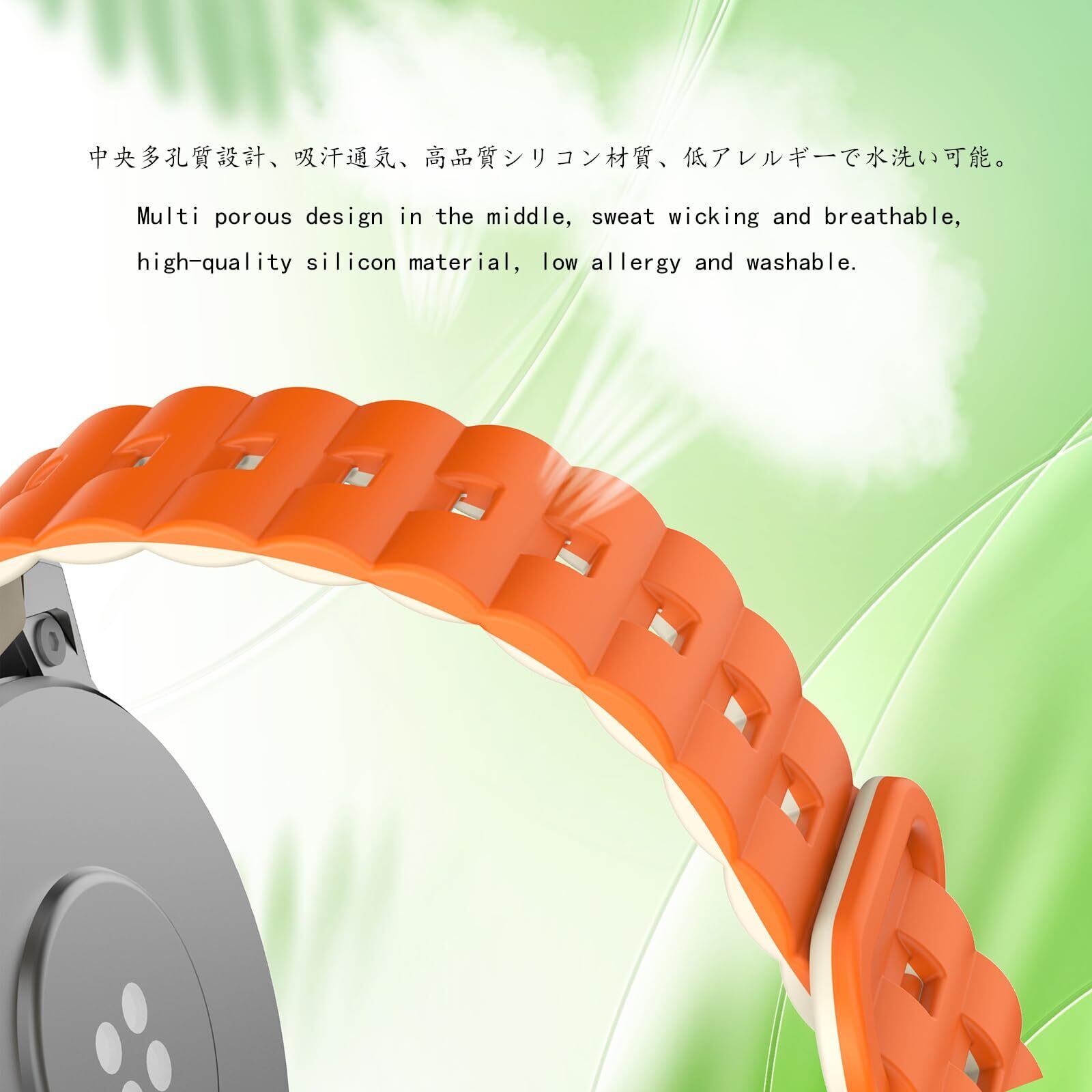 時計バンドは液状シリコンで作られ、柔らかく 快適 通気 防水 耐久性 特性を持ち、腕にぴったりフィットし、軽量設計で手首にストレスを与えません。
