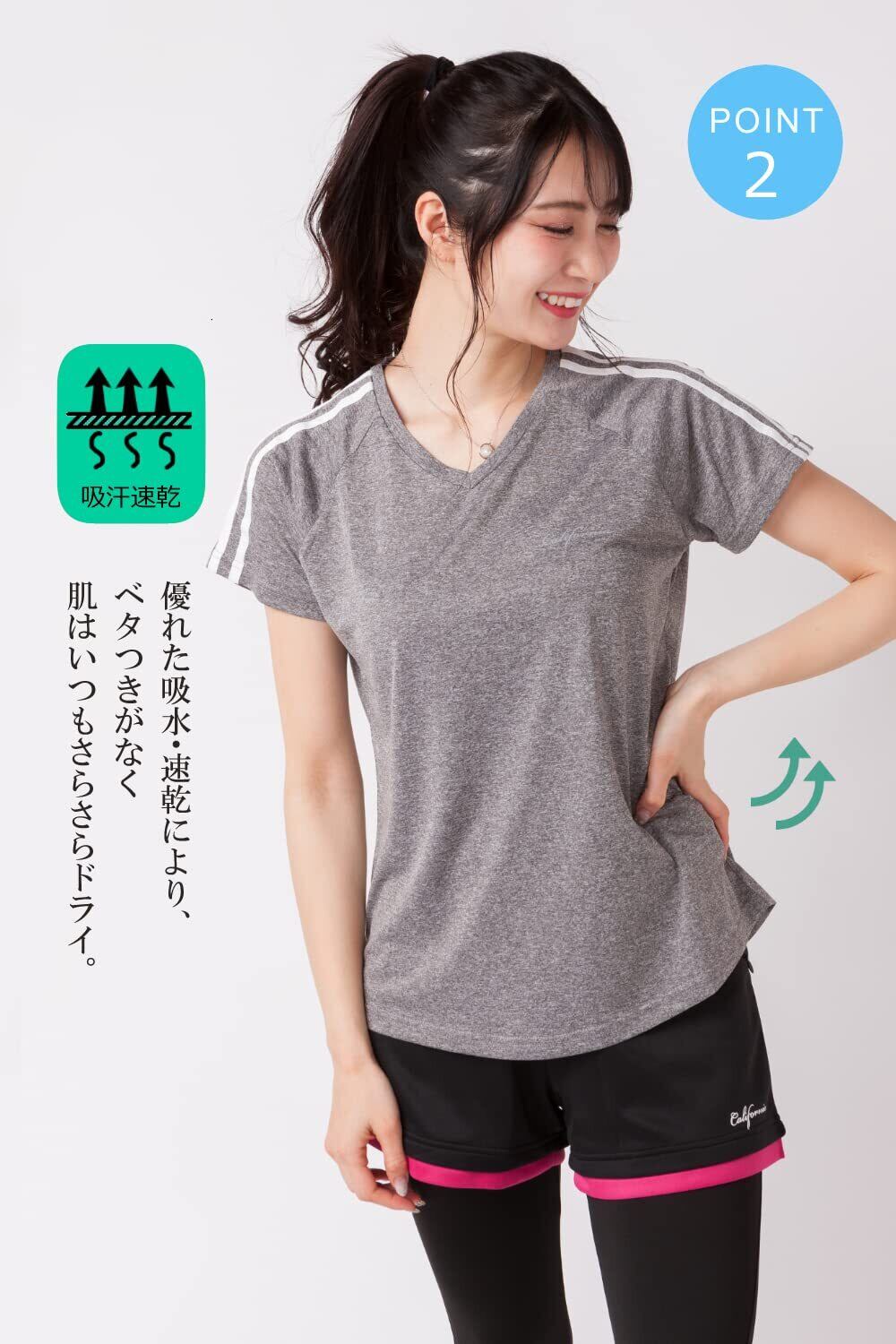 【在庫処分】[Y's factory] Tシャツ トップス 半袖 レディース Vネック スポーツウェア フィットネスウェア ドライウェア 吸汗速乾 ドライ UVカット 接触冷感 ストレッチ 春 夏 スポーツ ジョギング ジム ヨガ 春 夏 スポーツ ジョギング ジム ヨガ