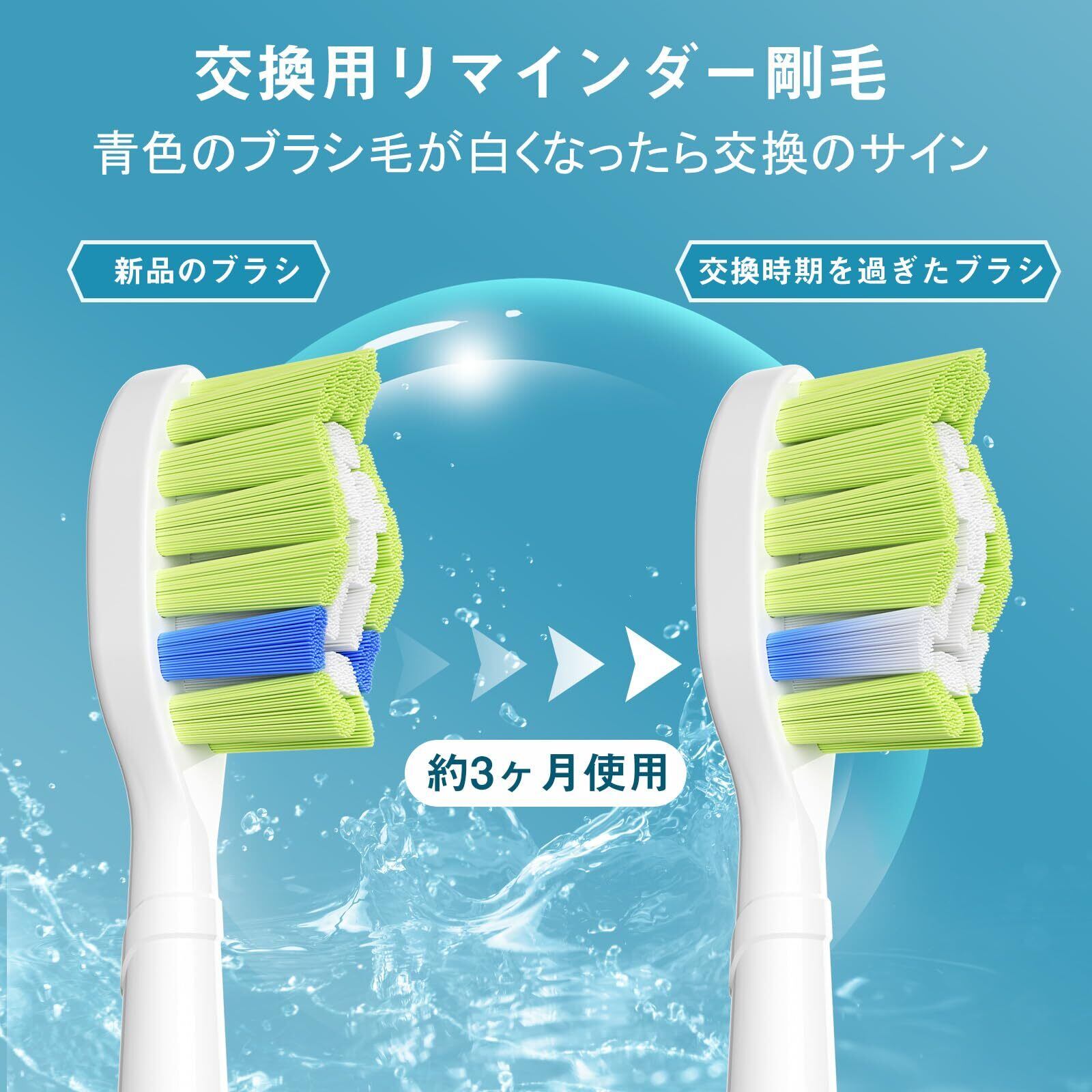 【交換リマインダ】フィリップス ソニッケアー 対応 電動歯ブラシ 替えブラシ は変色毛を採用しているので、青いブラシの毛は徐々にフェードし、1/3が白くなると、3ヶ月以内に歯ブラシのヘッドを交換することをお勧めします。