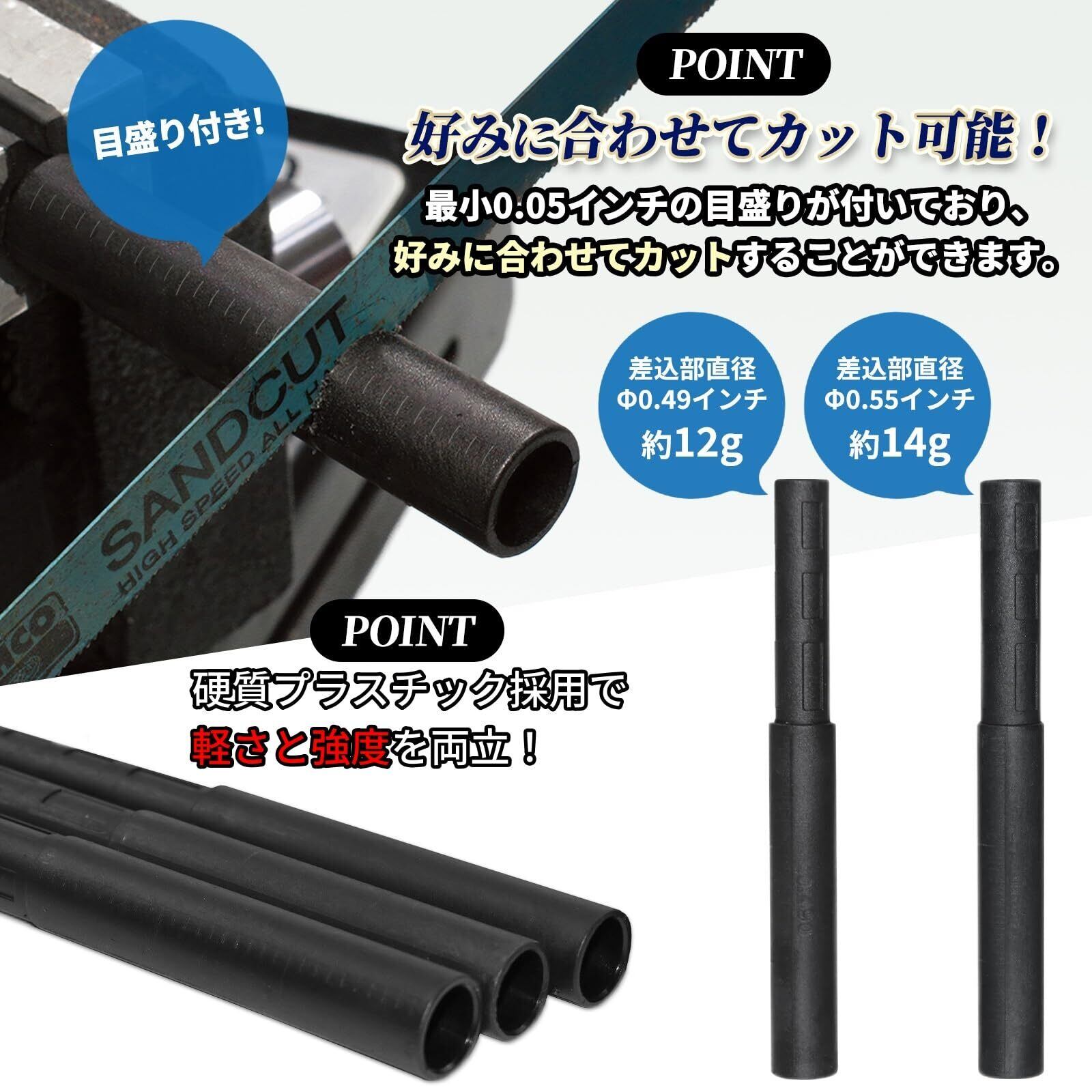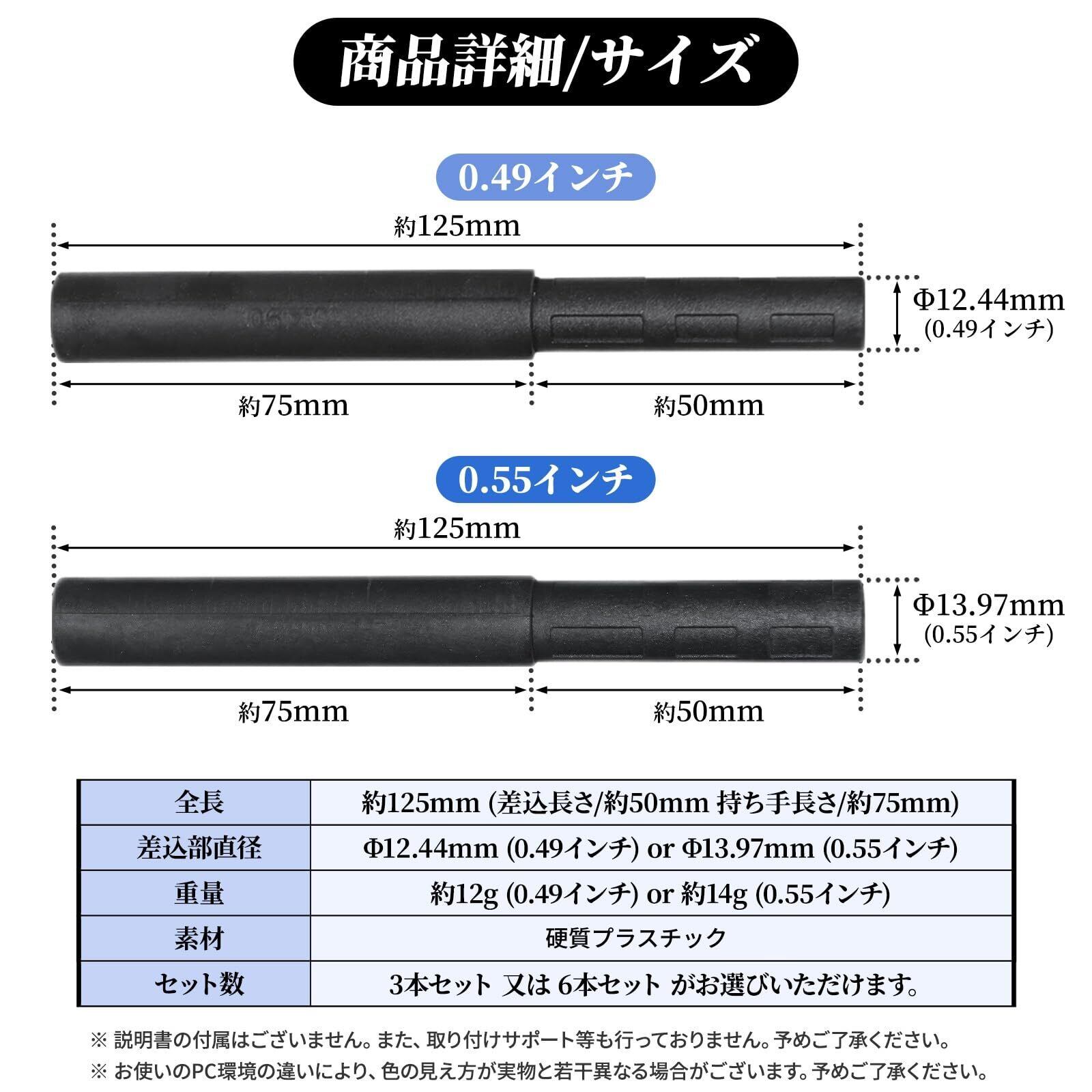 【ロッドサイズ】全長約125mm(差込長さ:約50mm、持ち手長さ:約75mm) 差込部直径:Φ12.44mm(0.49インチ)or Φ13.97mm(0.55インチ)【重量】約12g(0.49インチ) or 約14g(0.55インチ)