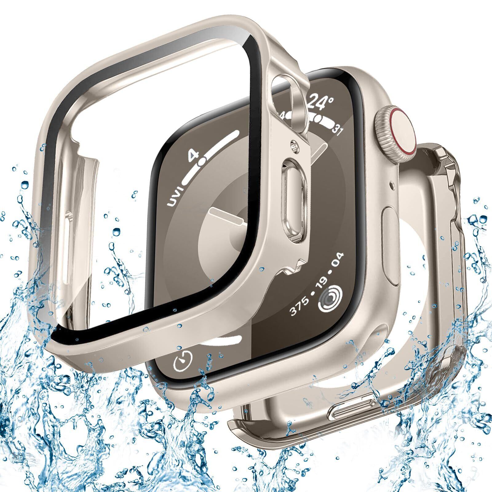 【2in1保護設計】POLINK 対応 アップルウォッチ カバー Series 10/9/8/7/SE/6/5/4 41mm PC素材 強化ガラス 対応 Apple Watch カバー防水 一体型 新デザイン 3D直角エッジ超薄型 高耐久 耐衝撃 高透過率 指紋防止 対応 Apple Watch ケース 全面保護 スターライト