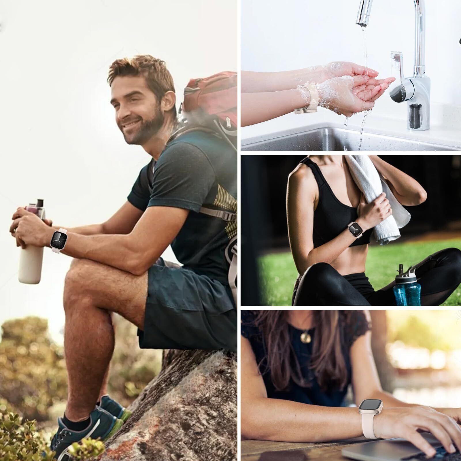 【防水・防塵ケース】シーリングリング内蔵したアッApple Watch ケース、アップルウォッチの画面にぴったりとフィットし、アップルウォッチ前面カバーと背面カバーの2 in 1全周保護設計で,表面から裏面まで 360度の全面保護します、IP67防水、防塵設計。ケースを取り外して水を拭くすることを繰り返す必要はありません。疎水性撥油性抜群の強化ガラス表面により、カバー面に水が溜まらず、シャワー、手洗い、発汗、運動、雨など、日常の使用に適しています。 ※ご注意:ウォッチの画面とカバーの間に水が浸入する場合、保護カバーを取り外し、柔らかい布で水を乾かしてください。