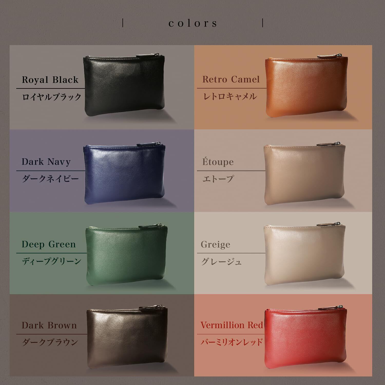 【 サイズ 】 縦9.5 × 横14.2 × 厚み1.1cm 【 重さ 】 約50g 【 収納力 】 メインスペース×1 【 素材 】 牛本革 フルグレイン プレミアムレザー(ベジタブルタンニン鞣し) 【 カラー 】 ロイヤルブラック・グレージュ・レトロキャメル・ダークネイビー・ディープグリーン・バーミリオンレッド・ダークブラウン・エトープ
