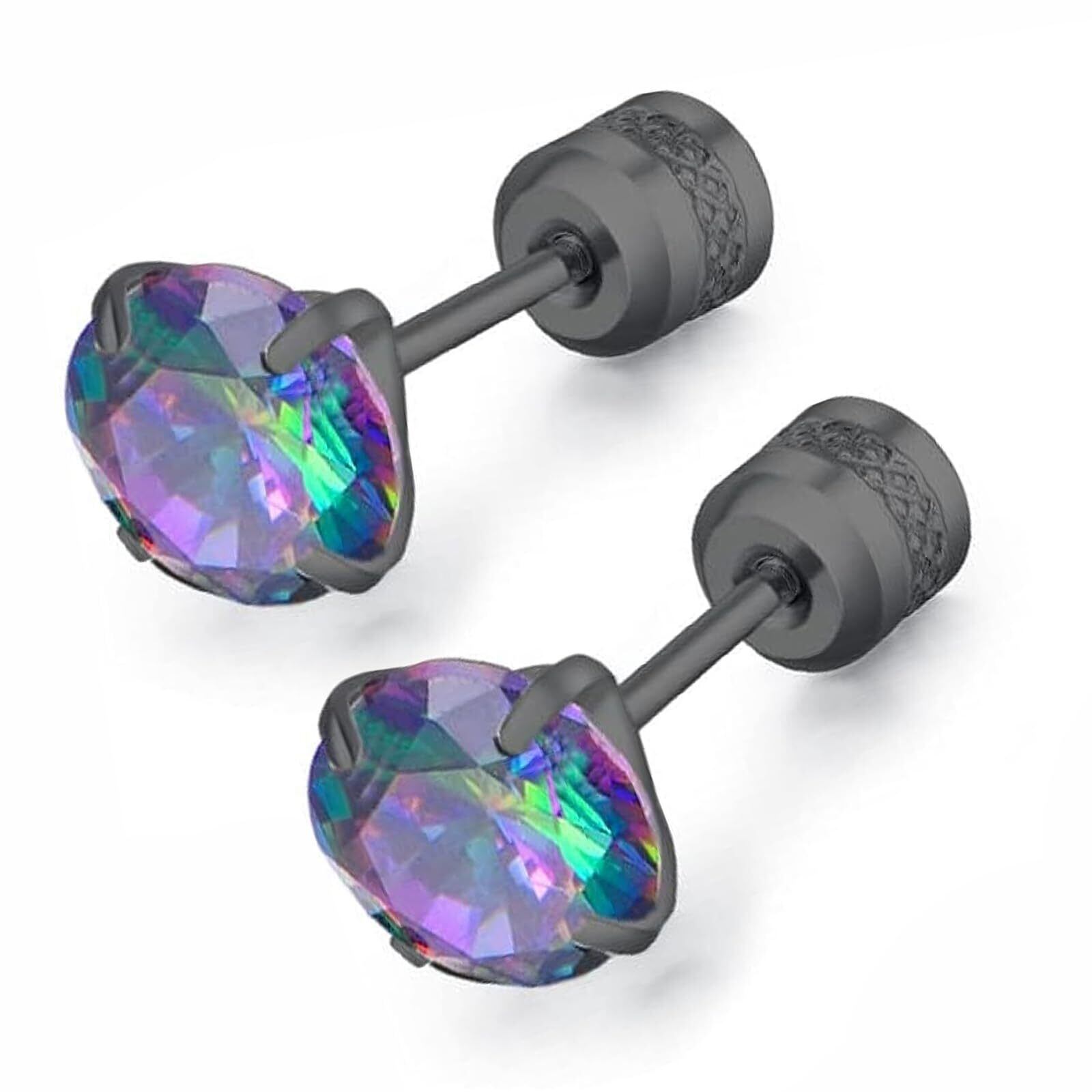 【新着商品】ピアス レディース 石 シンプル 5mm 黒 サージカルステンレス スタッドピアス つけっぱなし ネジ式 ジュエリー 男女兼用 両耳用 キャッチ 人気 おしゃれ プレゼント ファーストピアス ブラック 2個セット