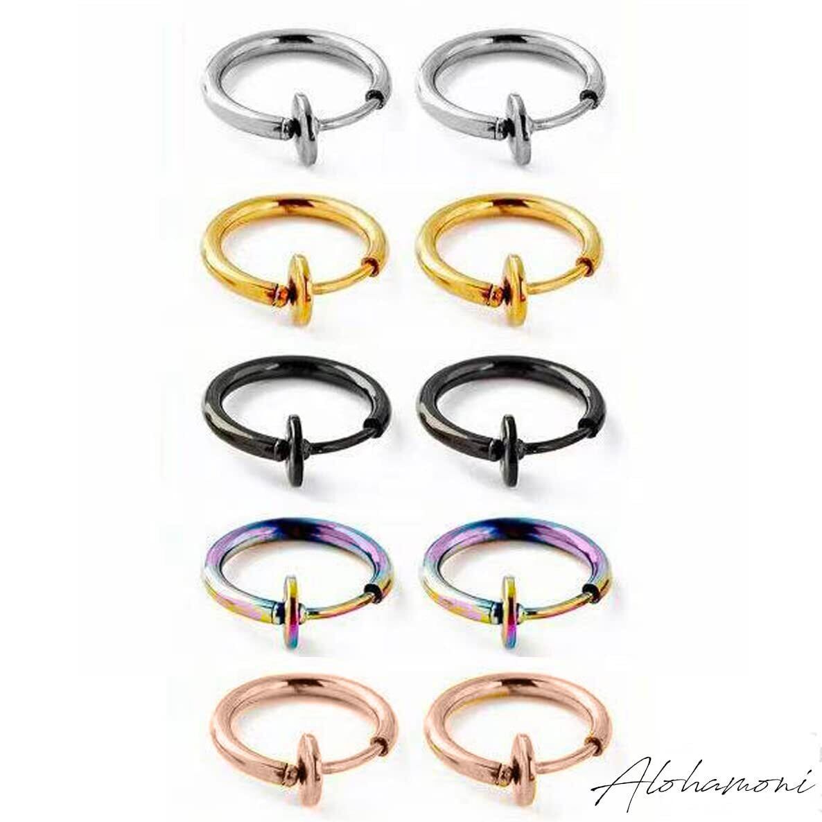 【特価商品】[ALOHAMONI] フェイクピアス イヤーカフ イヤリング 細フープ 両耳 2個 セット フープ リング メンズ レディース メンズ ユニセックス バネ式 スプリング 挟むだけ 簡単 装着
