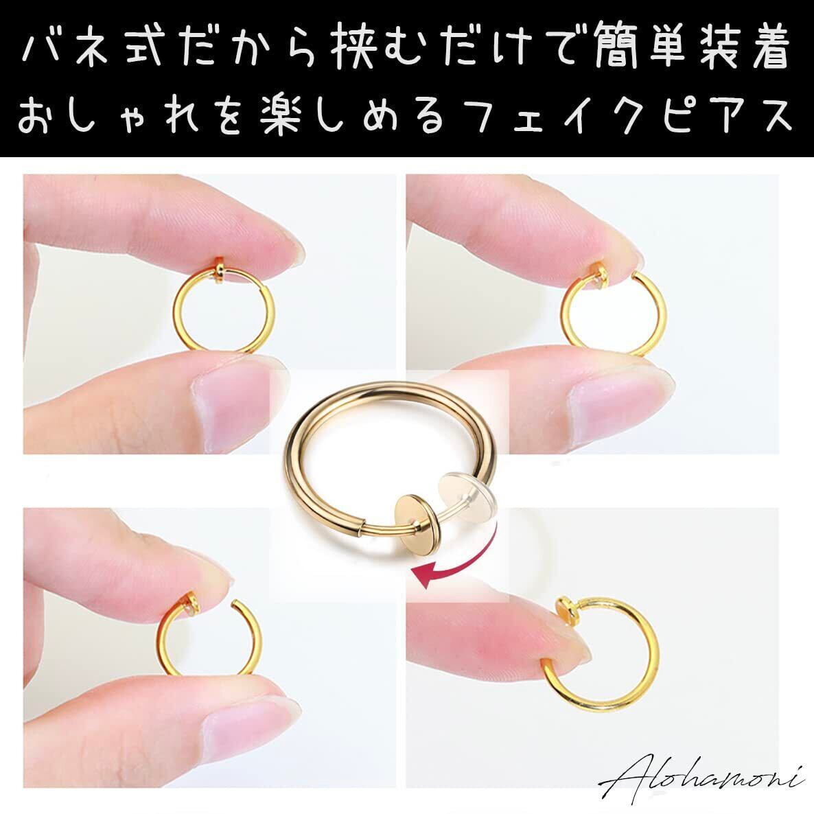 [ALOHAMONI] フェイクピアス イヤーカフ イヤリング 細フープ 両耳 2個 セット フープ リング メンズ レディース メンズ ユニセックス バネ式 スプリング 挟むだけ 簡単 装着