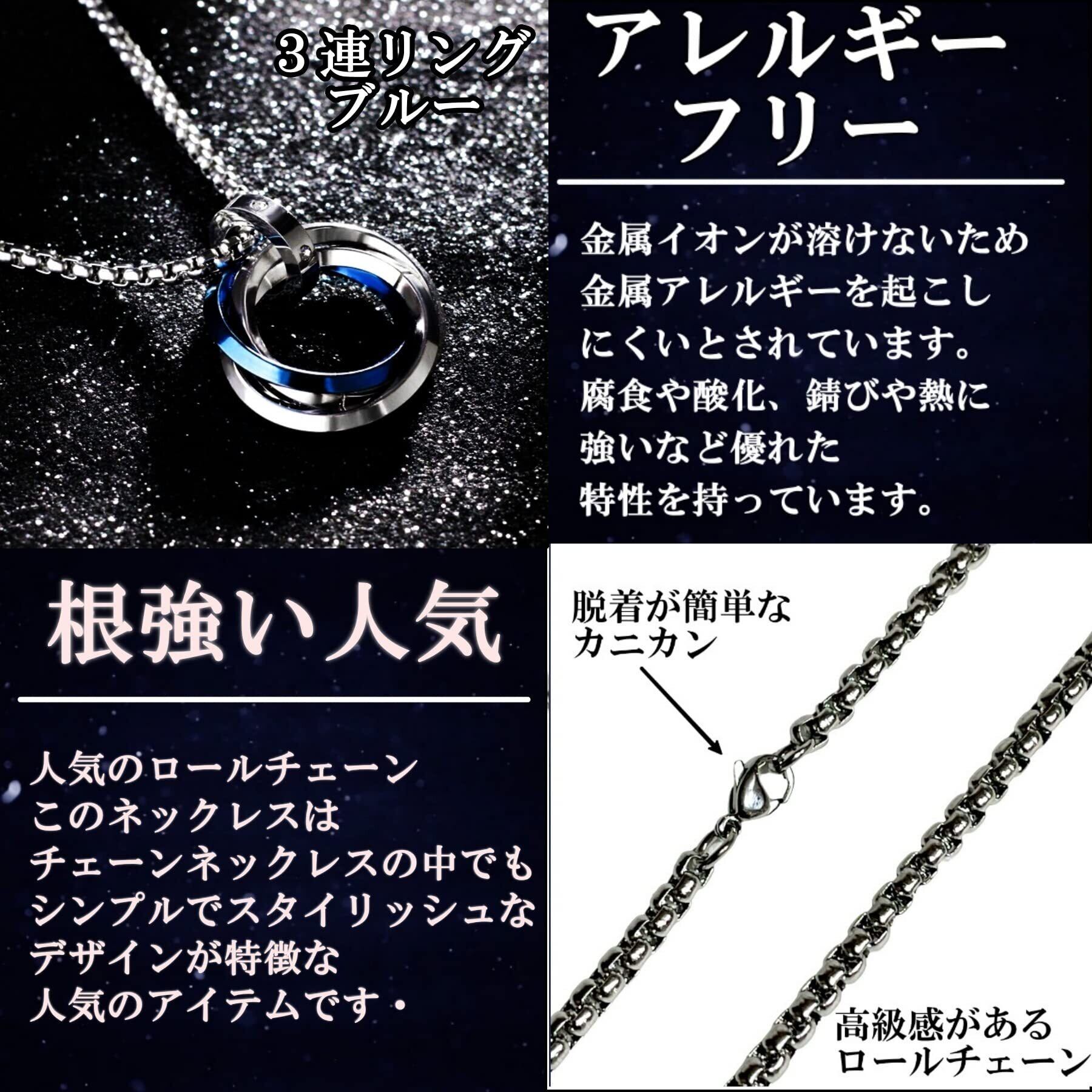 [YAHANE] ネックレス メンズ ペンダント ダブルリング 3連リング シンプル ステンレス アクセサリー シルバー ブルー ブラック ゴールド トップ ジュエリー アレルギーフリー 防水