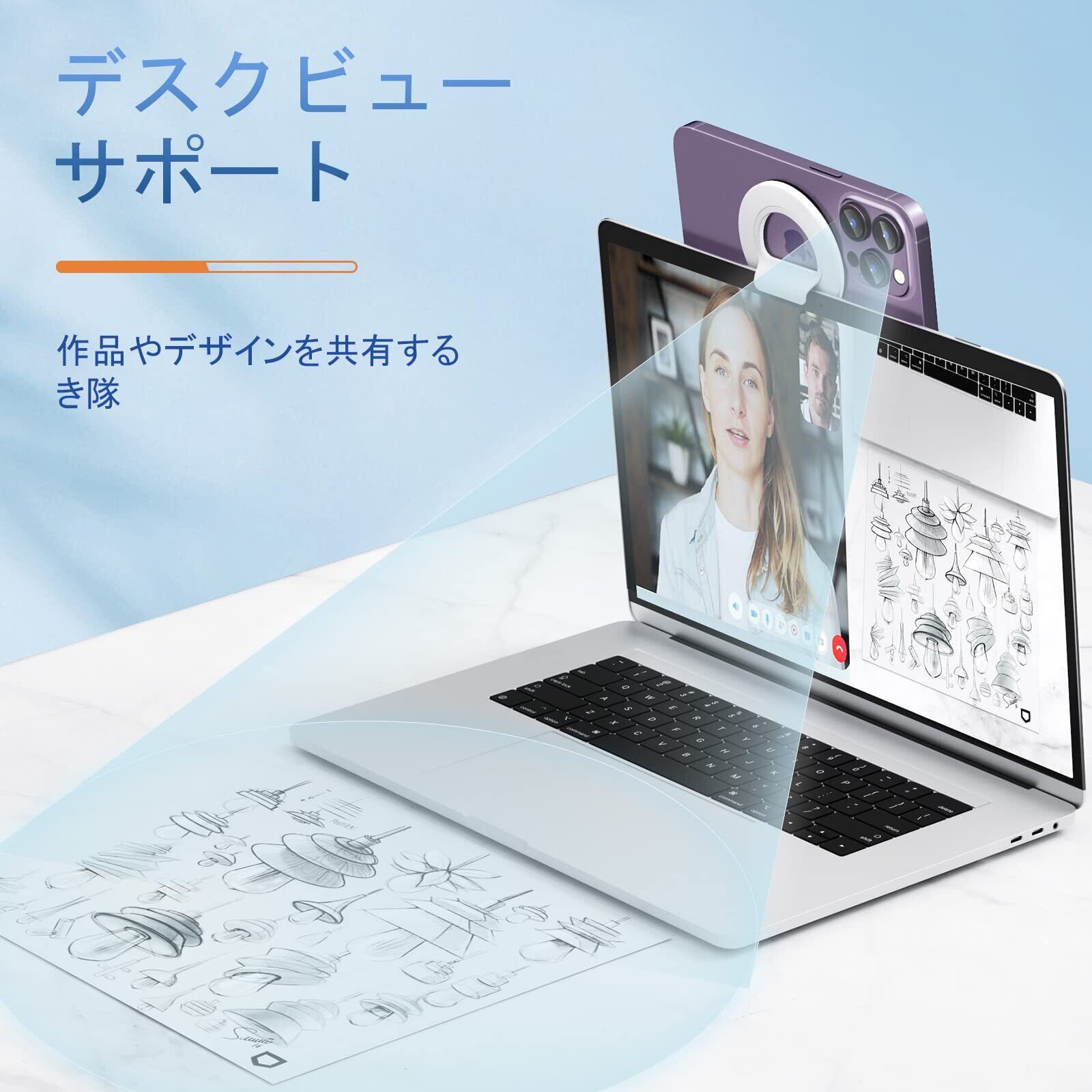 【Continuity Camera Mount】iPhoneをスナップしてマウントするだけで、iPhoneがMacBookのワイヤレスウェブカメラになり、より柔軟性があります。