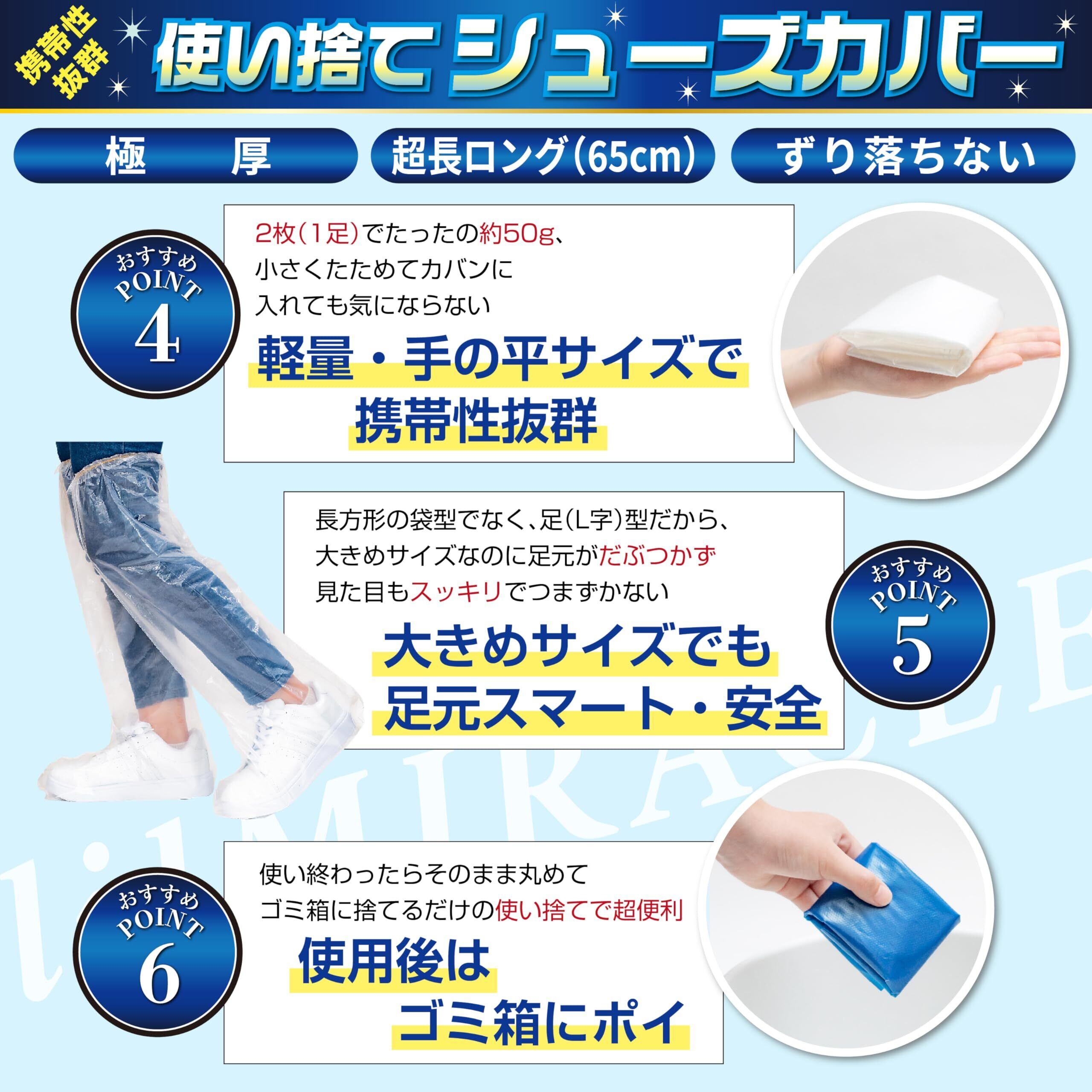 [lilMIRACLE] シューズカバー 靴カバー 【国内検査済み】 足カバー 使い捨て 防水 極厚 レインシューズカバー