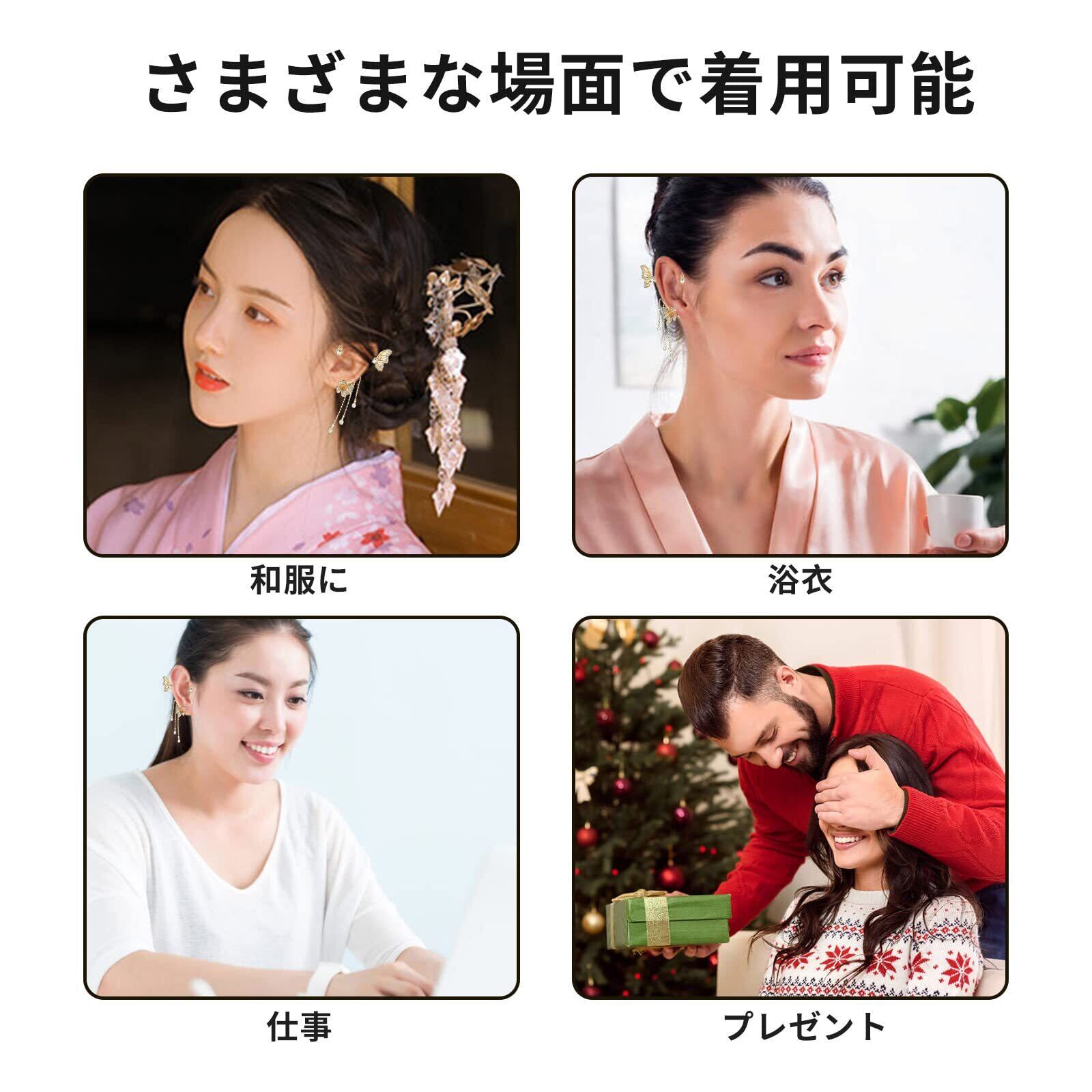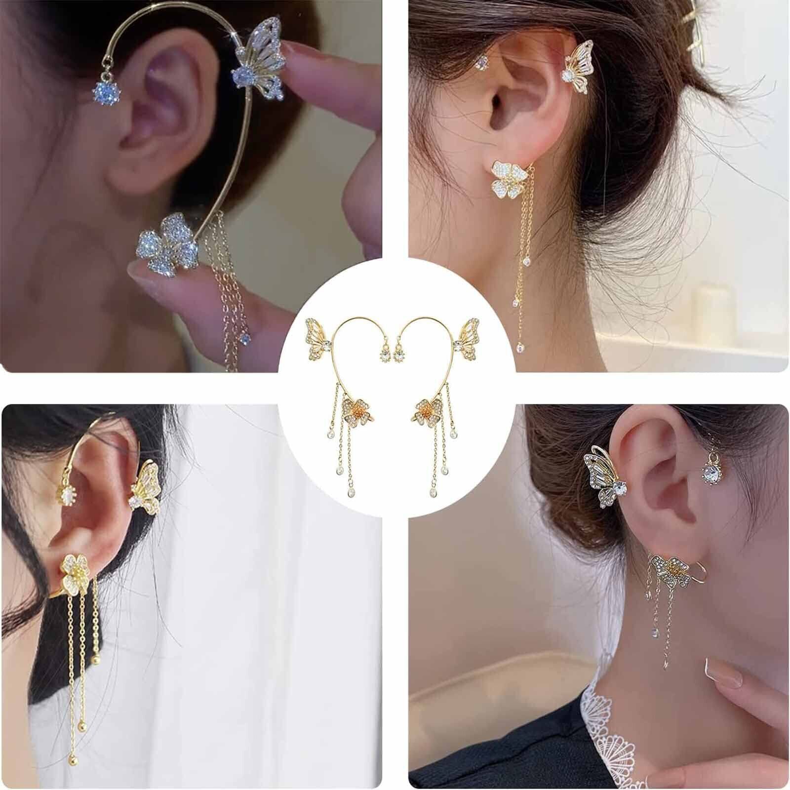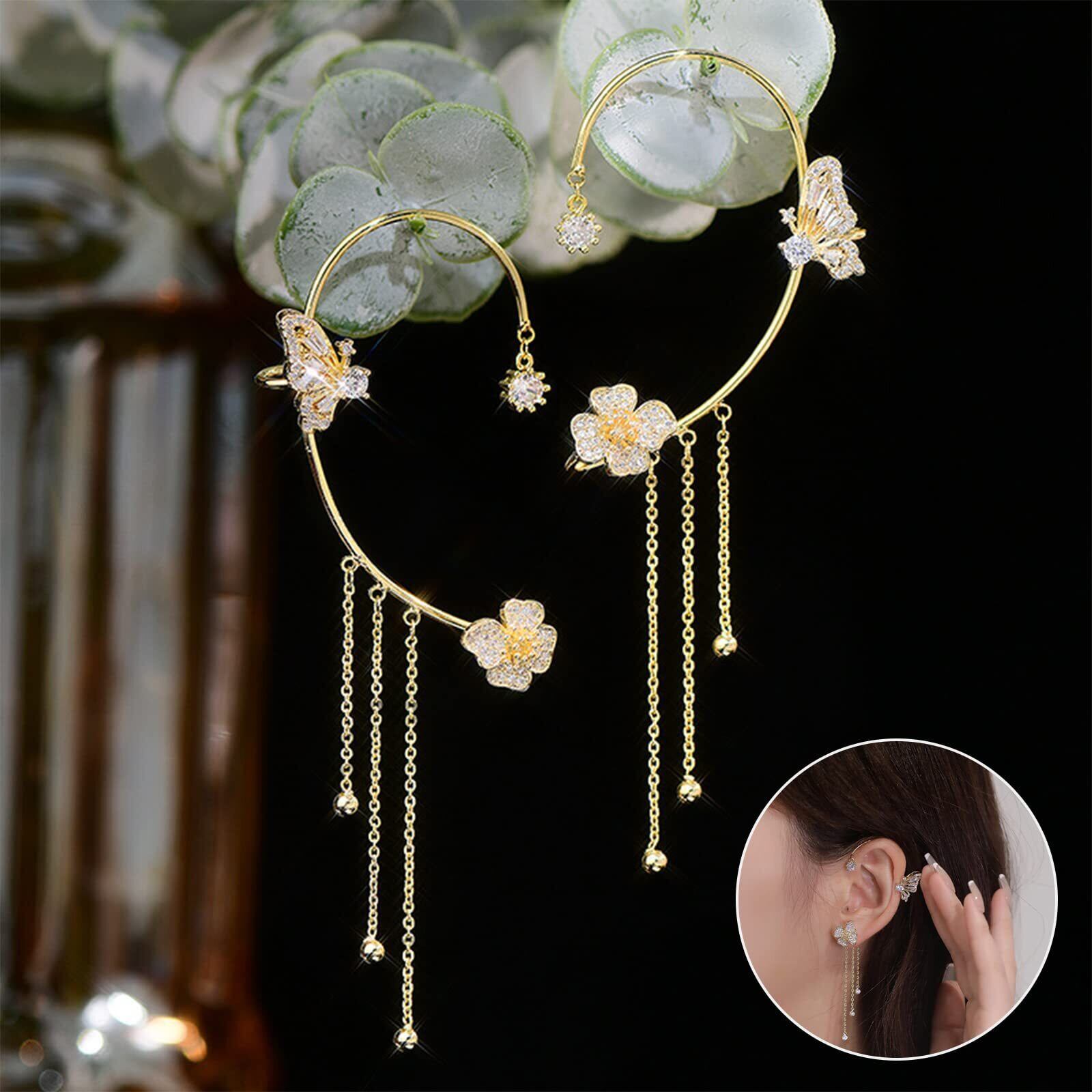 【高品質素材】蝶の花のイヤリングは、高品質の合金ラインストーンで作られています。耳を外気から完全に保護し、金メッキで錆びない。カフの幅を絞ったり、背面のイヤーピースを調節することで、緩やかに調整することができます。