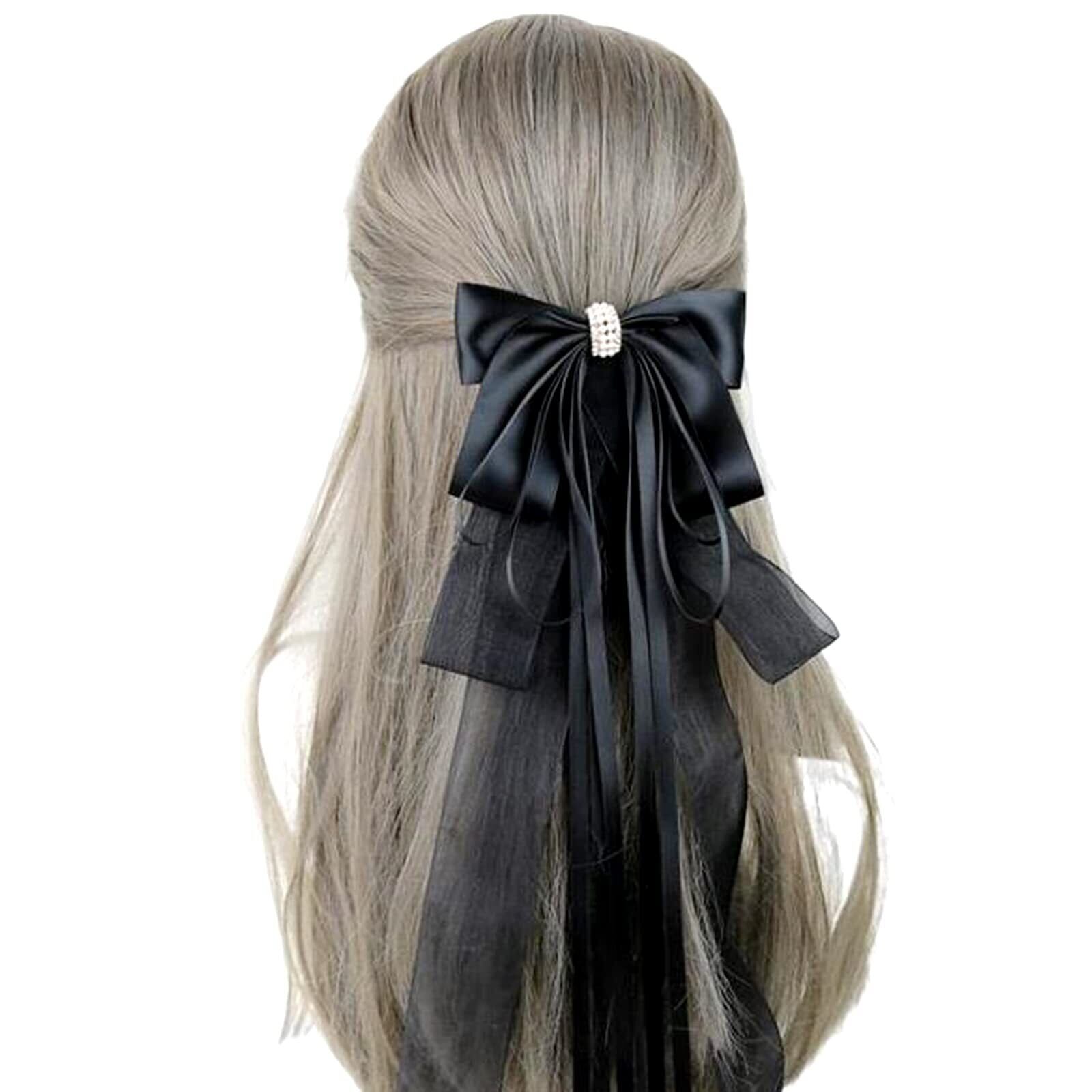 [SCGEHA] 髪飾り リボン バレッタ ヘアアクセサリー ヘッドドレス ゴスロリ ロリータ お姫様 森ガール(ブラック)